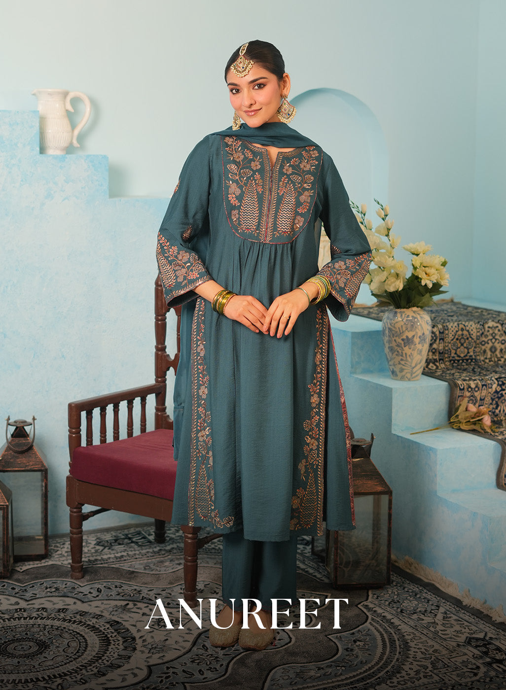 Vaara represents Lakshita’s elevated design language a premium ethnic wear defined by finer fabrics, intricate embroidery, and statement craftsmanship. Designed for women who appreciate quiet luxury, Vaara blends heritage artistry with modern silhouettes for occasions that call for distinction.