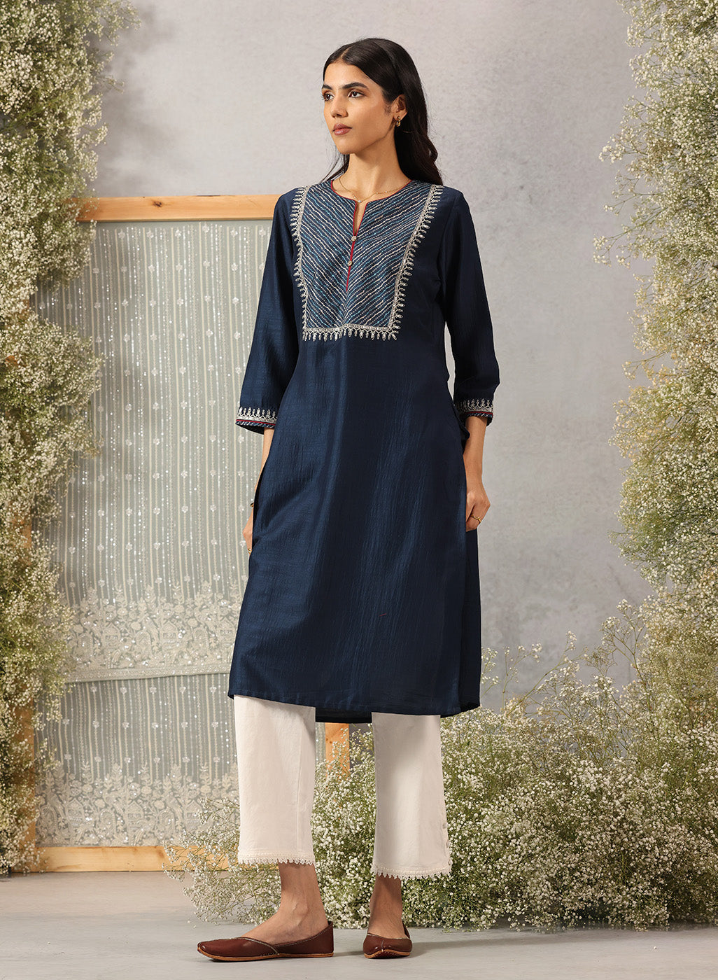 Another way to create a polished look with minimal effort is by using coordinated outfits. Select a top that has a slight definition at the waist, paired with comfortable, loose pants. This combination allows you to incorporate both ethnic and Western elements into the same outfit.