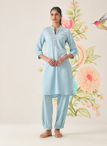 Kiana Berry Blue Embroidered Kurta Set