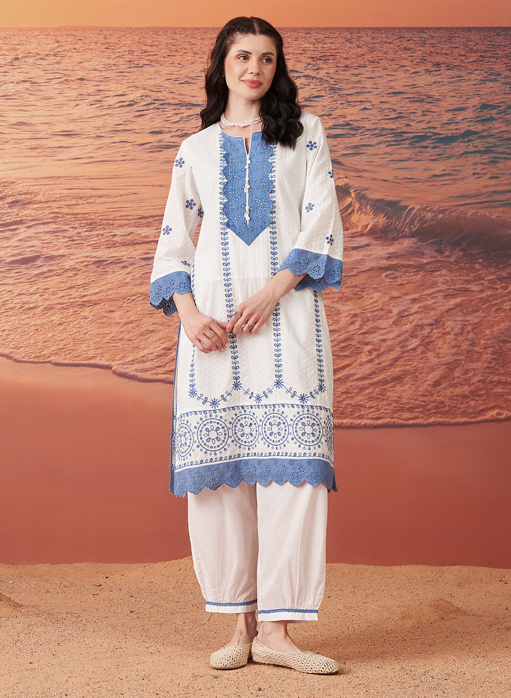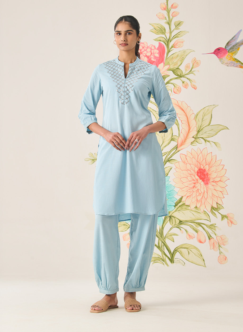 The straight silhouette keeps things clean and fuss-free, making it ideal for everyday wear, while the breathable fabric ensures you stay comfortable through the heat. And the embroidery? Just enough to add charm, without making it feel heavy or overdone.