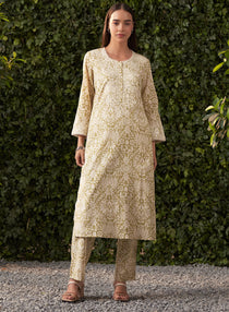 Lyra Lime Green Printed Linen-Cotton Kurta Set