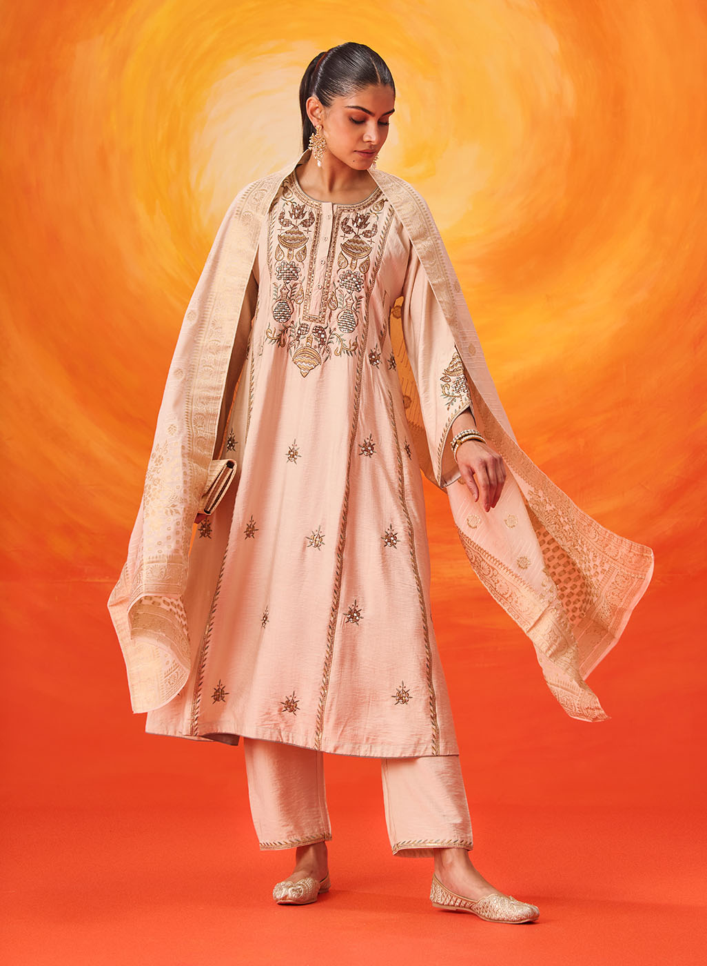 Sometimes all an outfit needs is a little detail to feel special. Kurta sets with delicate embroidery, zari accents, or subtle shimmers, instantly elevate your festive look. They add just the right amount of richness without feeling too heavy.