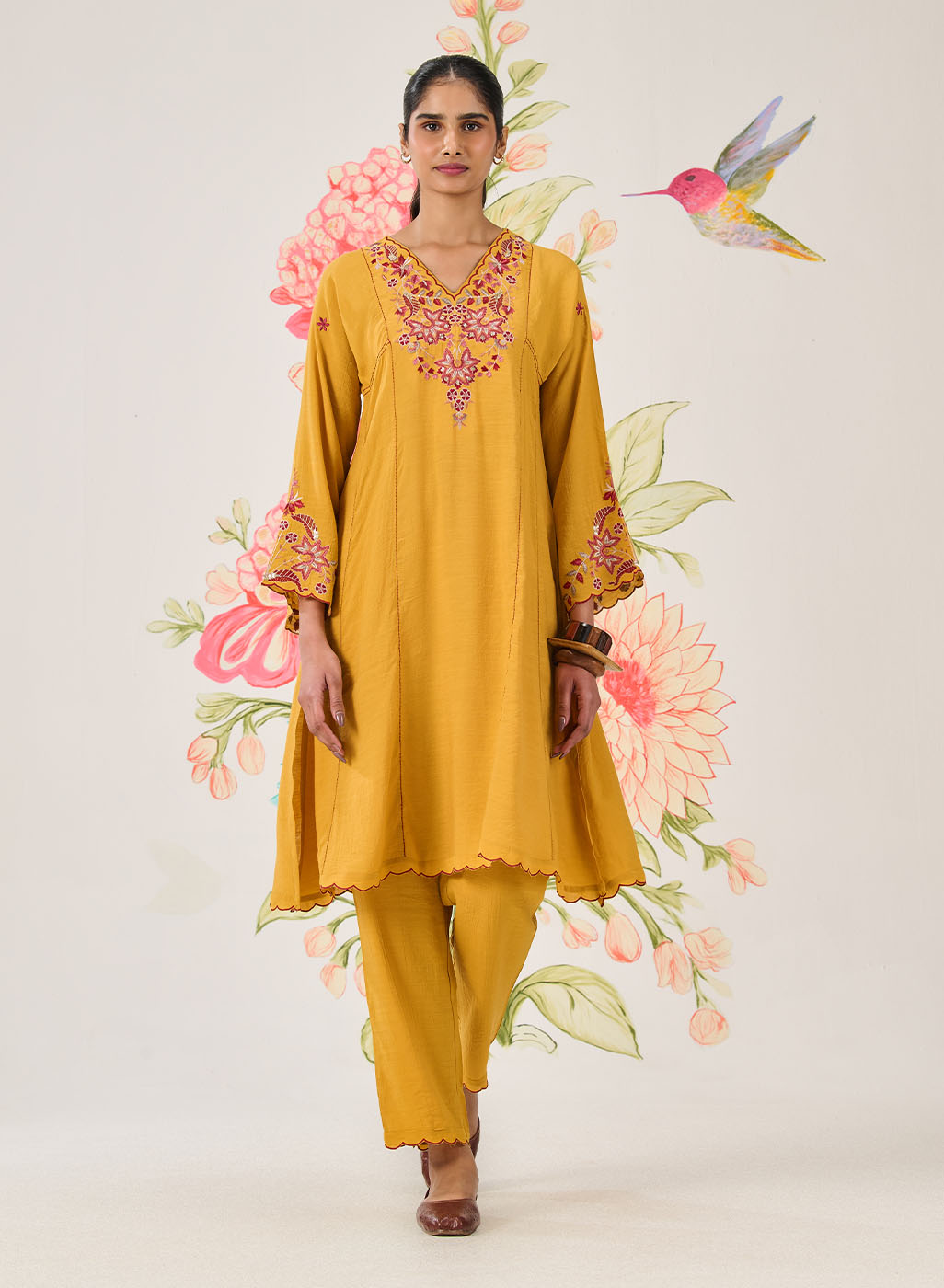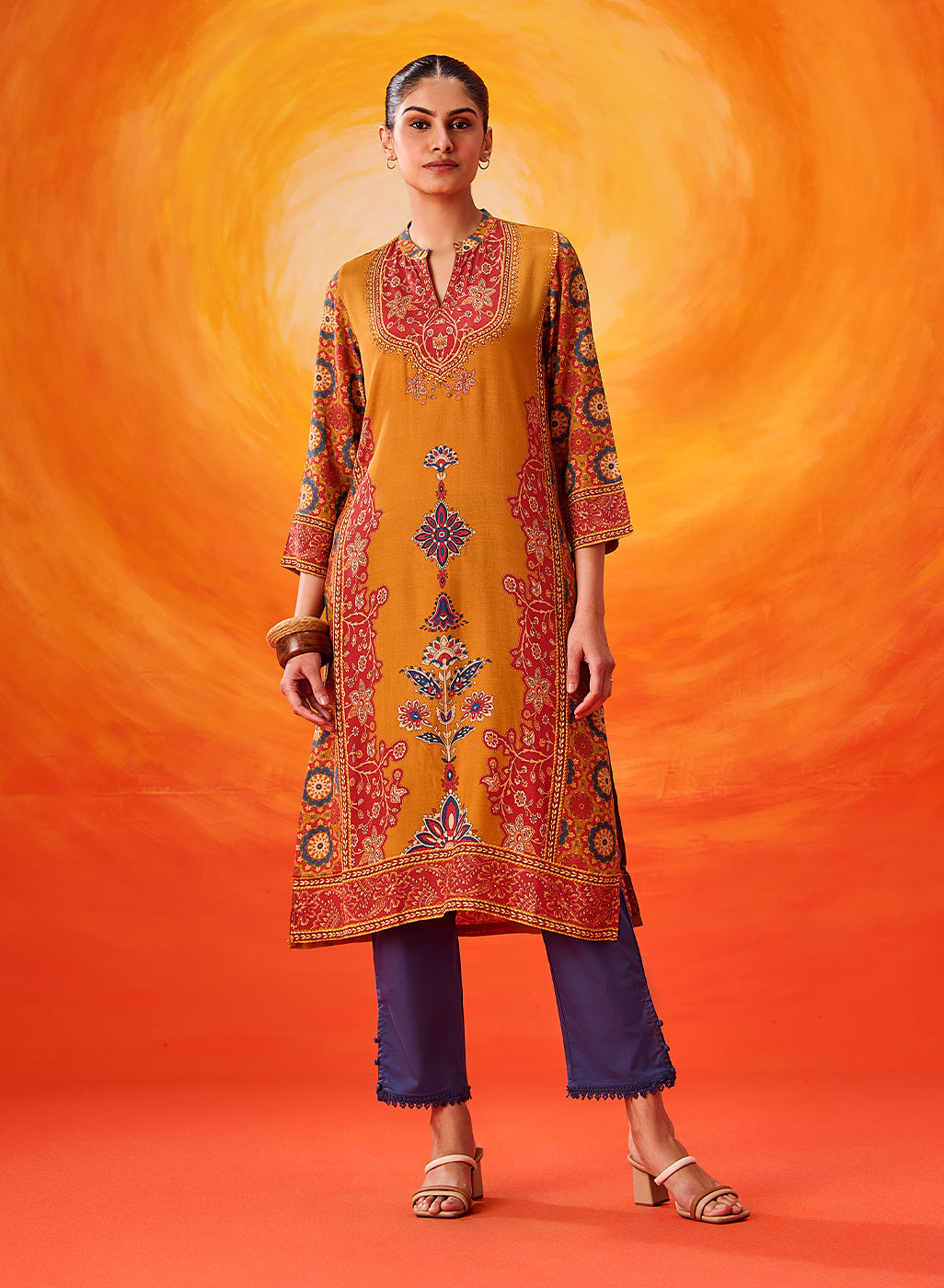 If you love silhouettes that feel flattering and easy to wear, A-line kurtas are a fantastic choice. The gentle flare adds movement and shape, while keeping the overall look polished and relaxed without any styling gymnastics. For women looking for comfortable Navratri outfit ideas, A-line kurtas are always a safe bet.