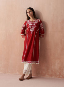 The color red is very auspicious, especially on an occasion like Raksha Bandhan. It stands for purity, love, power, and protection in the relationship. Celebrate this strongest bond by wearing this gorgeous red Raksha Bandhan special Kurti with intricate embroidery and lace accents. Complete the traditional look by teaming it with white palazzo pants, silver hoop earrings, and charm bracelets. Create enthralling looks with stunning sharara Kurti sets in festive colors from Lakshita.
