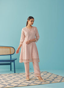 Now, on the second we have our embellished kurtas, which are a timeless choice when it comes to festive wear for women. Lakshita has got a wide variety of these beautiful ensembles featuring captivating embroidery, vibrant prints, and flattering silhouettes. Look at this white mirror work schiffli kurta which will go well with various types of ethnic bottom wear like palazzo pants and salwars. Pair it with statement earrings and embellished footwear to create a regal and elegant look for the Raksha Bandhan festivities.