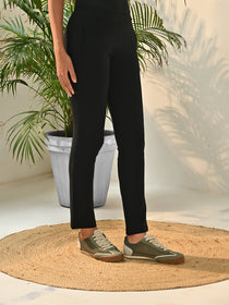 Lakshita’s Liah Black Straight Fit Trousers for Women combine ease with ageless sophistication. Crafted from soft, airy material, they have an elasticated waist for convenience and one lip pocket for functionality. The deep black colour has a sophisticated look, making them a nice choice for both everyday and dressy occasions.