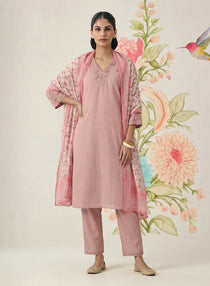 The soft pink shade keeps things light, easy, and feminine. It is the perfect everyday pastel shade. It instantly softens the overall look, especially on hot summer days. What really works here is the silhouette. The A-line shape gives it an effortless flow, making it comfortable to wear for long hours without feeling restrictive. The delicate embroidery and scalloped edging elevate it just enough without overwhelming it.