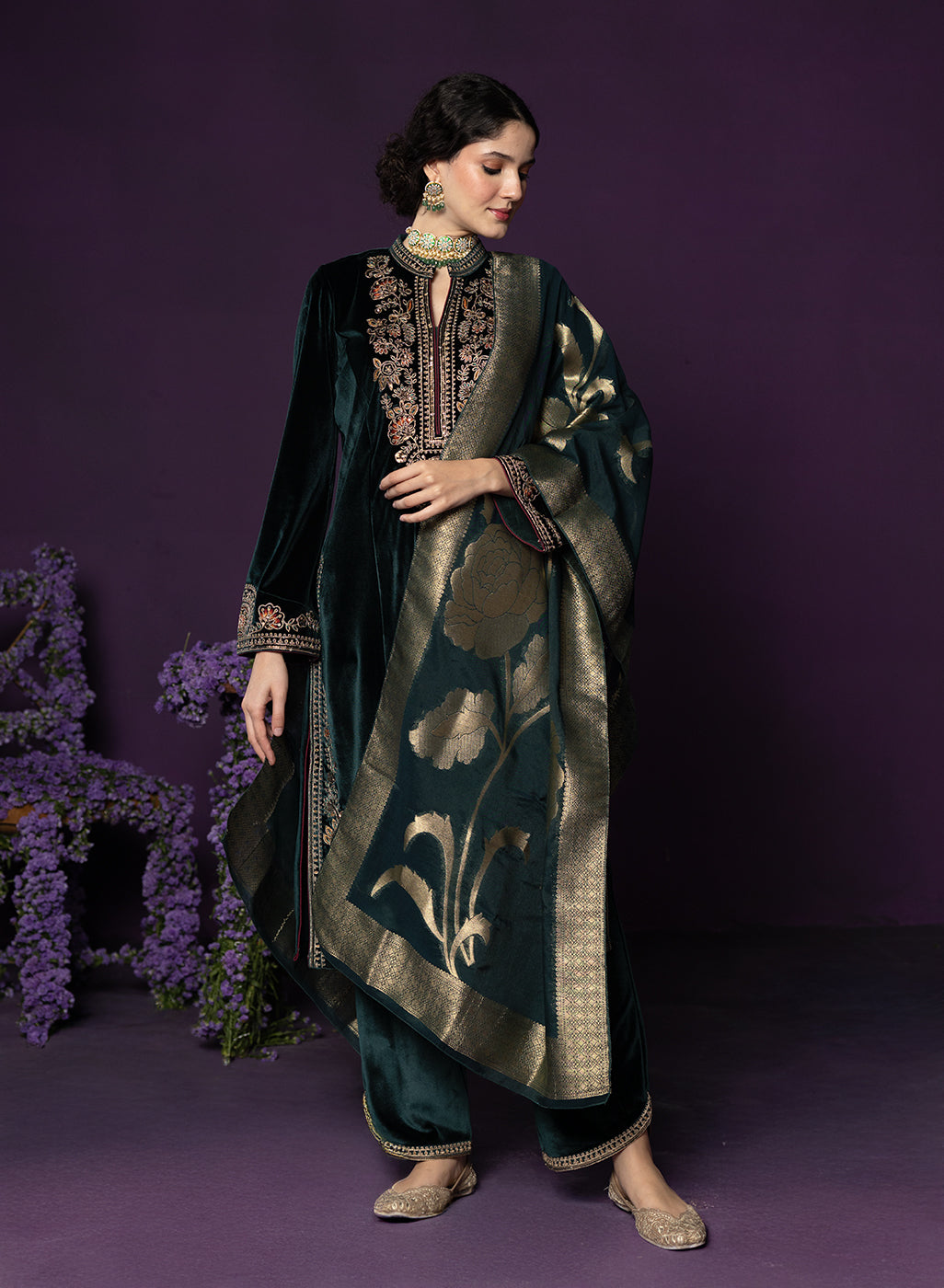 Velvet is all about drama- plush texture, rich colours, and festive vibes. It is heavier and ideal for the winter months. Its sheen and warmth make it ideal for winter wedding attire.