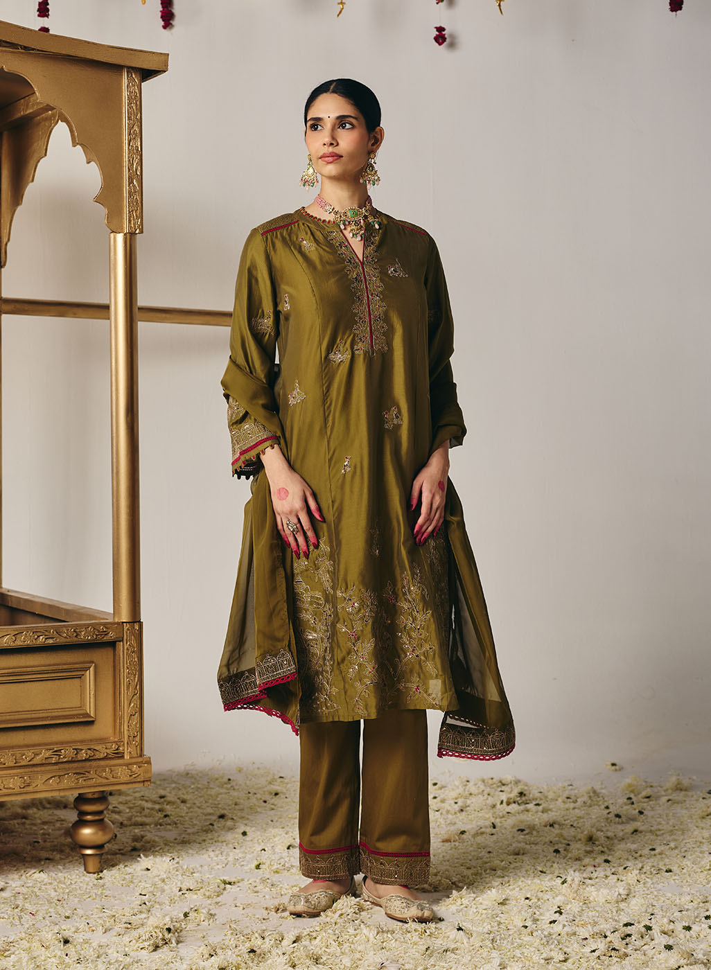 Chanderi is the go-to fabric when you want something festive but not heavy. Light, slightly sheer, with a natural sheen, it is a favourite for festive ethnic wear. This fabric sits beautifully in the world of premium textiles, without feeling overwhelming.