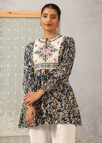 Fan of cotton kurtis for women? Then this yellow cotton kurti flaunting floral embroidery is something you should not skip, thanks to its simple yet beautiful design. You can pair it with wide-leg pants or palazzos for a chic look.