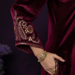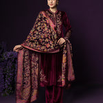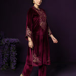 Gulal Maroon Embroidered Velvet Suit Set with Banarasi Dupatta