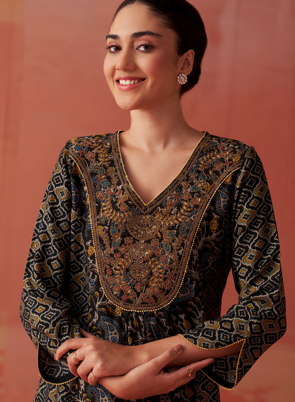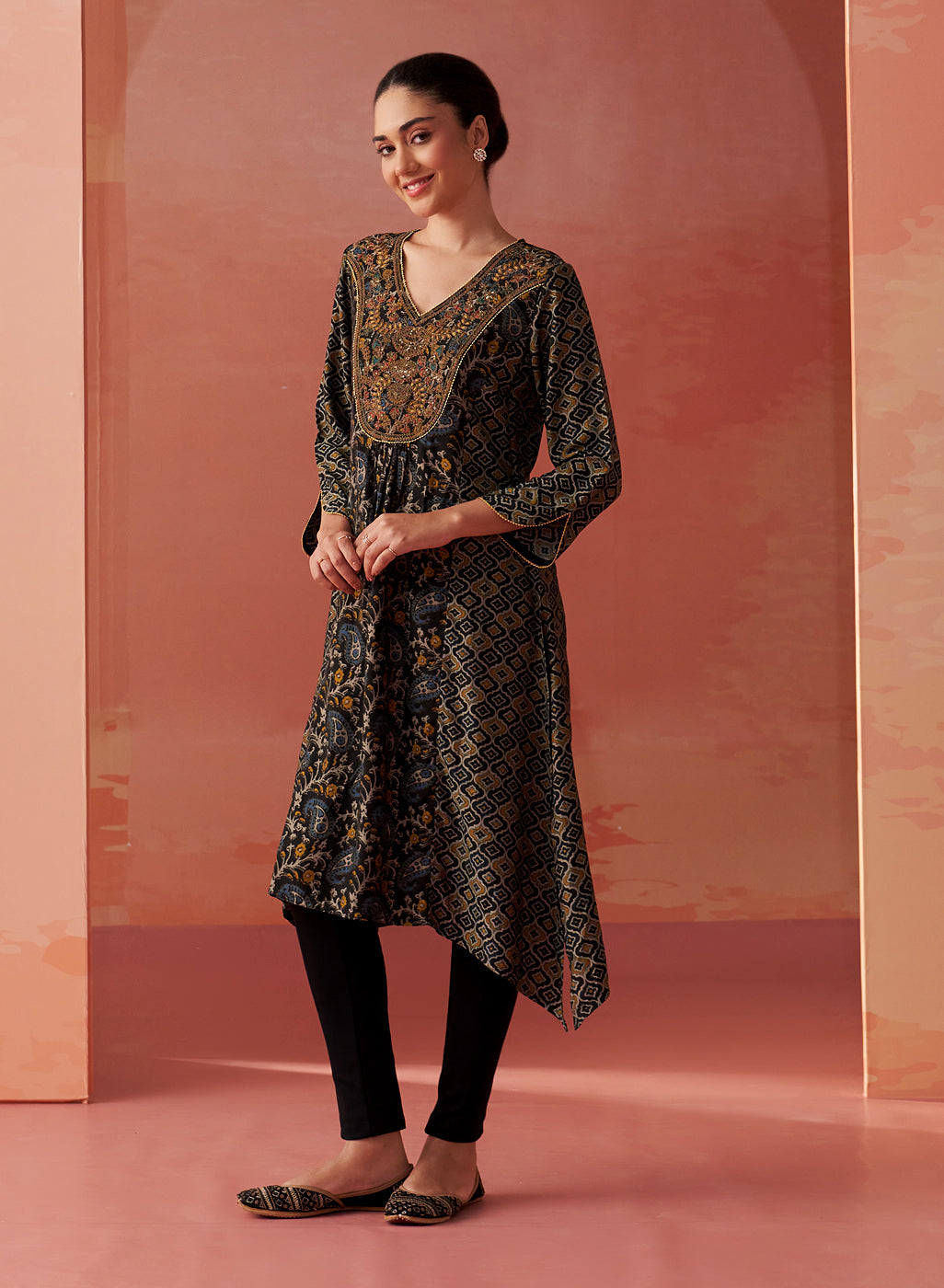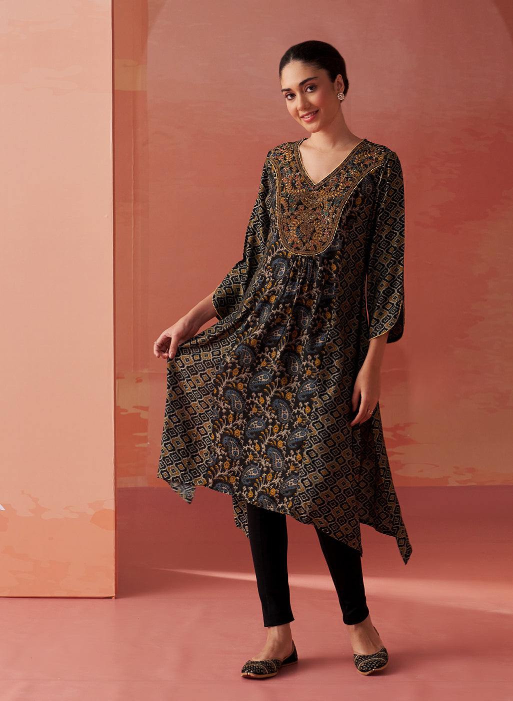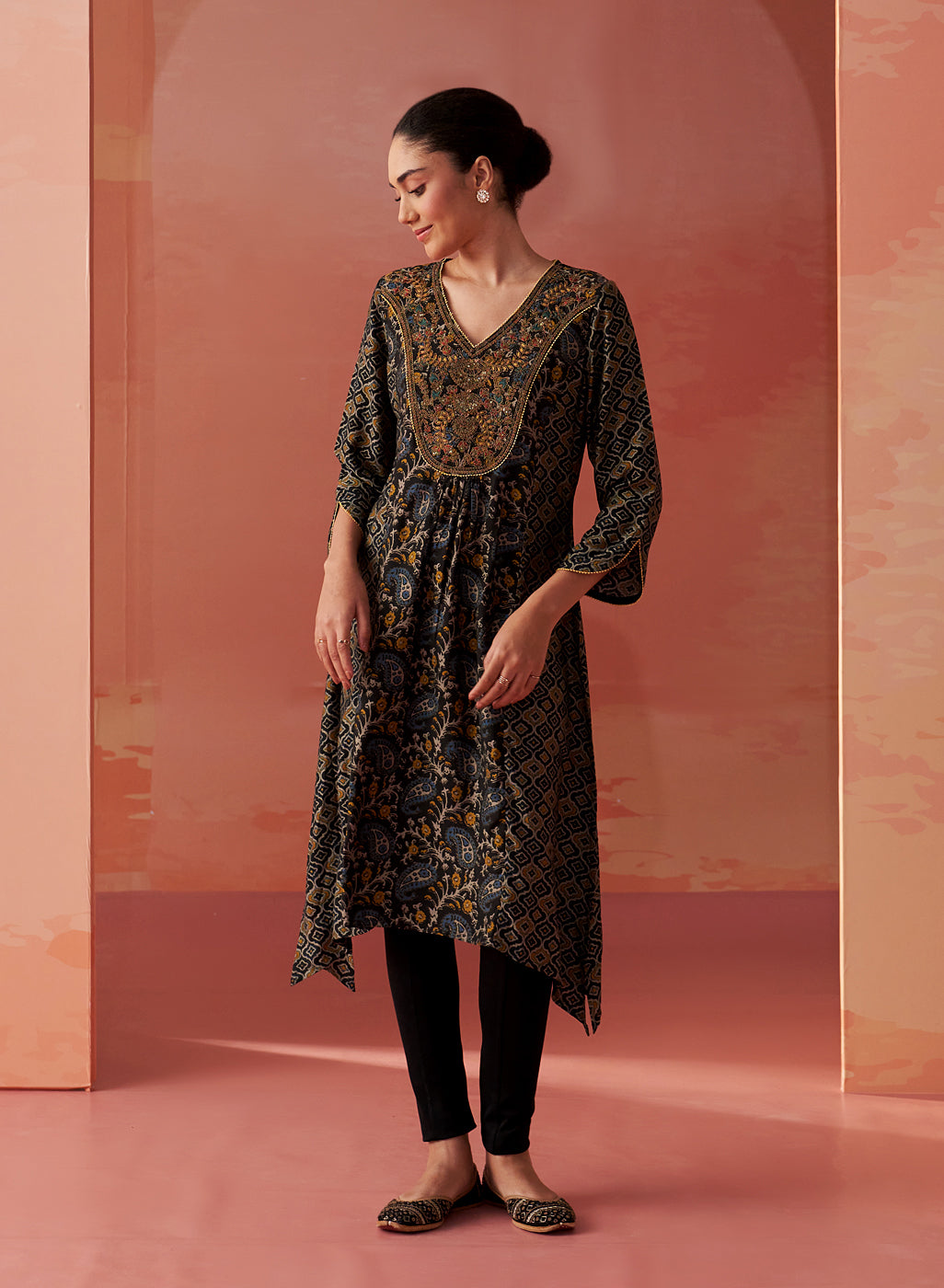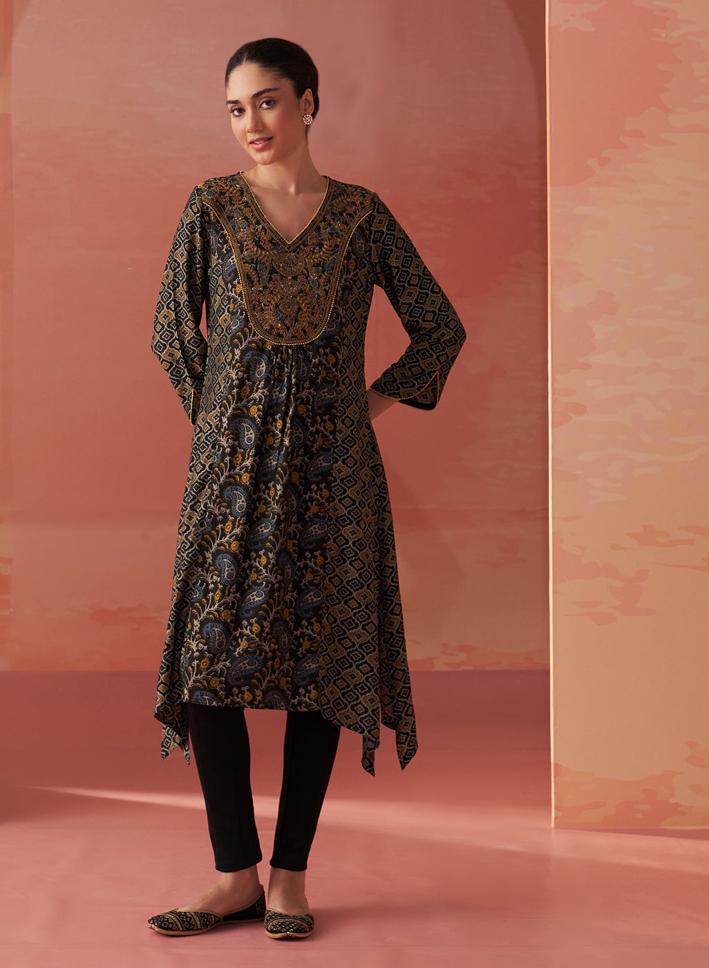 Embrace the perfect blend of traditional craftsmanship and modern design with our Dilshad long printed kurta for women, an exquisite piece crafted for those evening gatherings. Made from soft, breathable fabric, this kurta promises both comfort and style, ensuring you feel as good as you look.