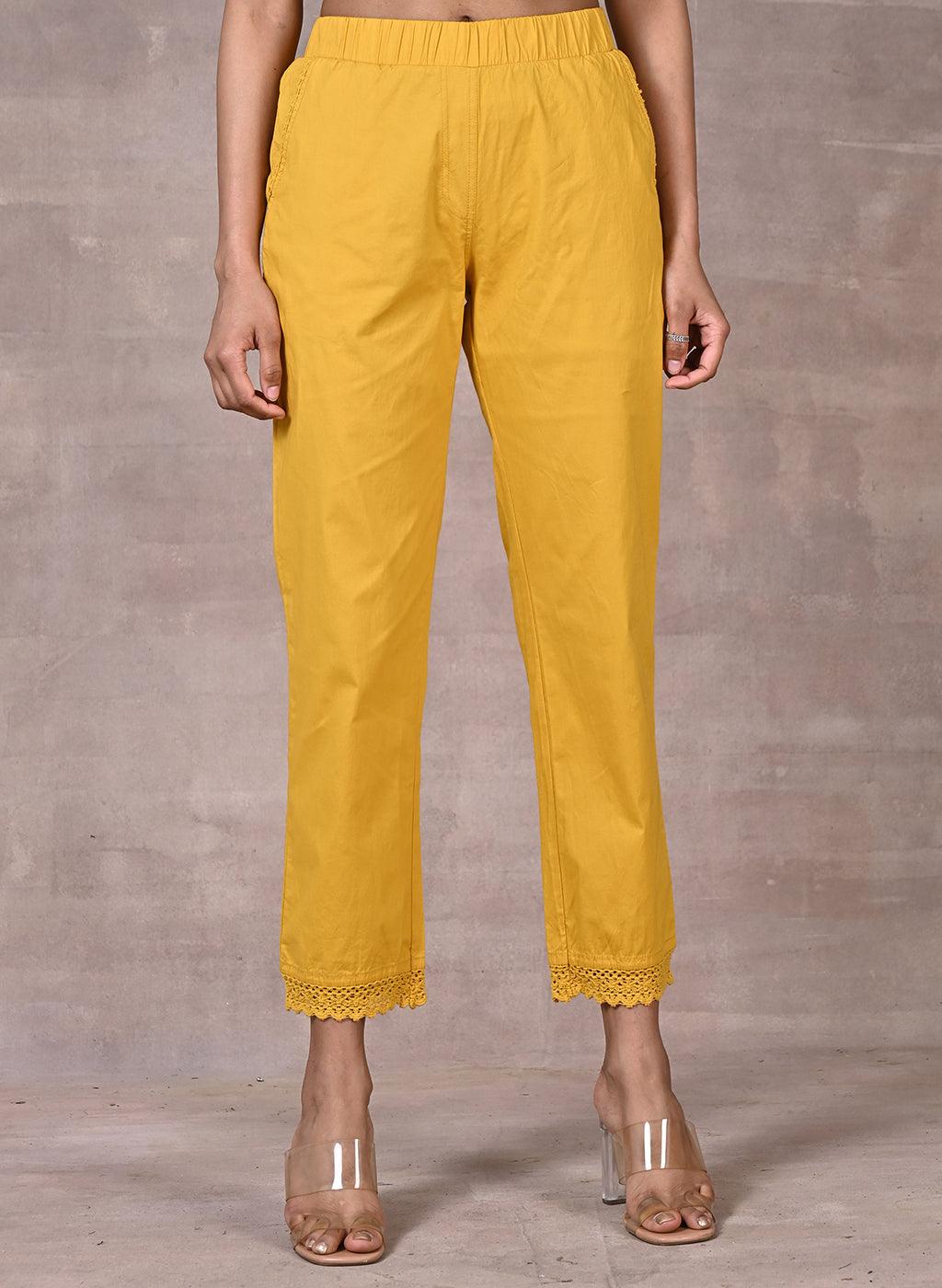 Taara Yellow Classic Fit Cotton Trousers for Women