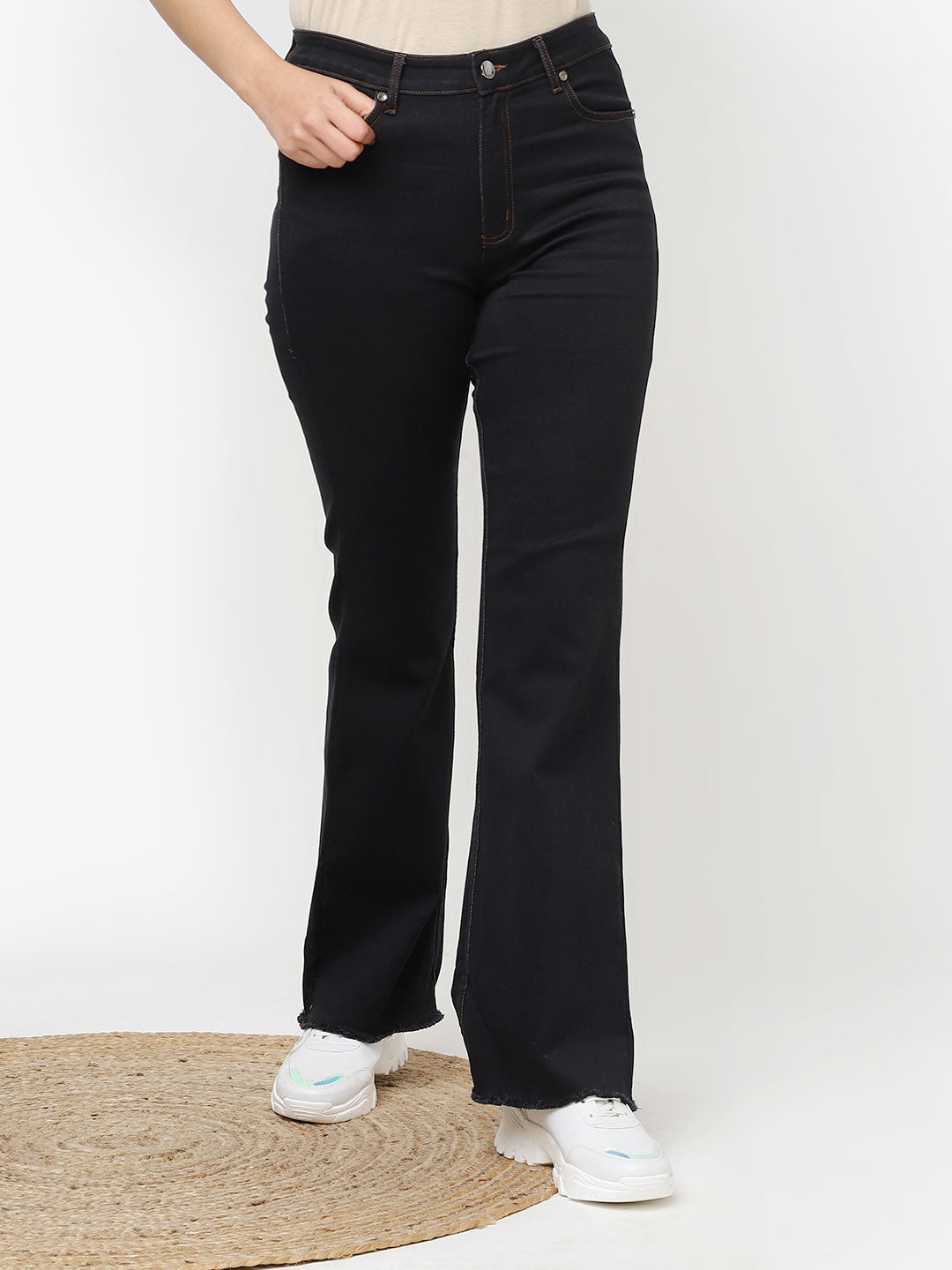 Black Bootcut Jeans Pant for Women with Stone Work on Sides