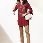 Burgundy Embroidered Nargis Kurti