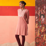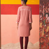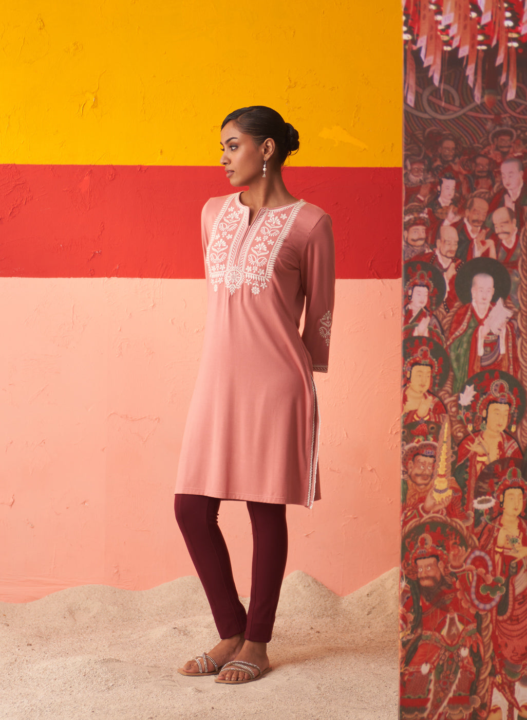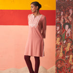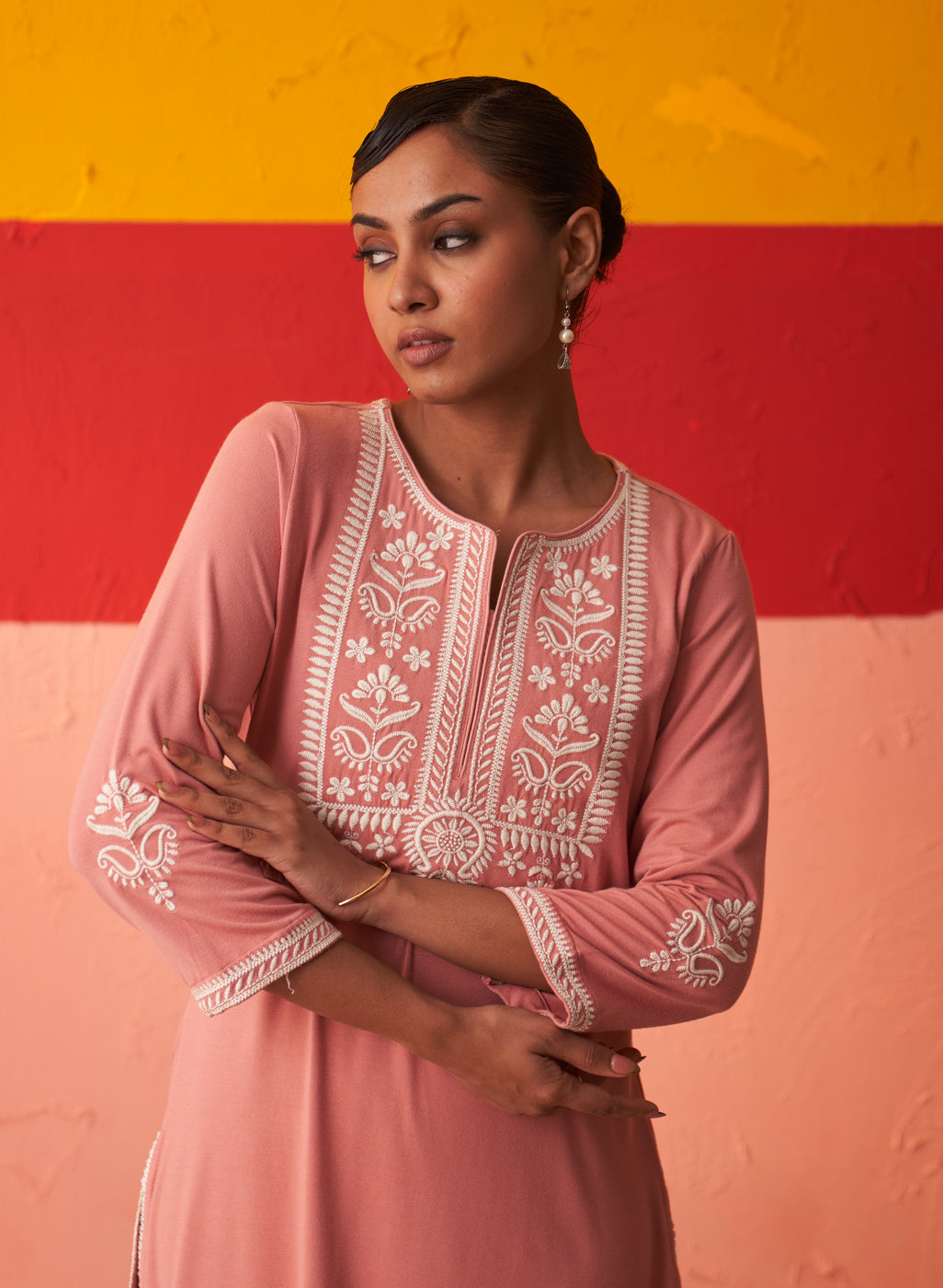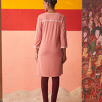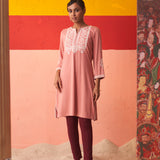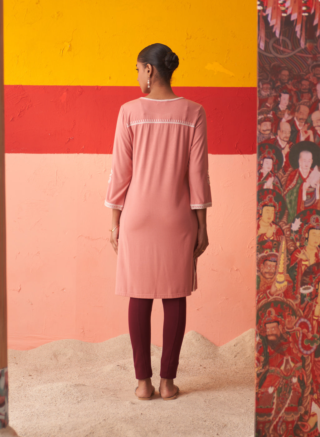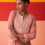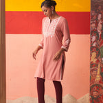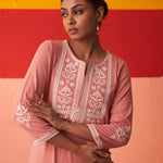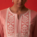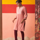 Pink Kurta for Women with Threadwork and Lace Detailing