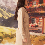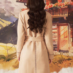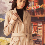 Introducing our Sara Beige Monochrome Suede Long Coat for Women, a sophisticated statement piece that exudes elegance and style. Crafted from soft suede with a slight sheen, this coat offers a luxurious feel while maintaining a contemporary edge.