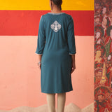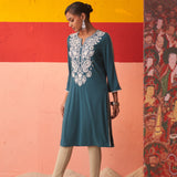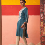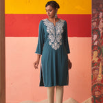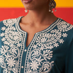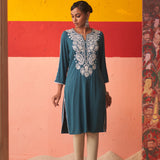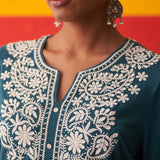 Teal Straight Kurta for Women with Threadwork