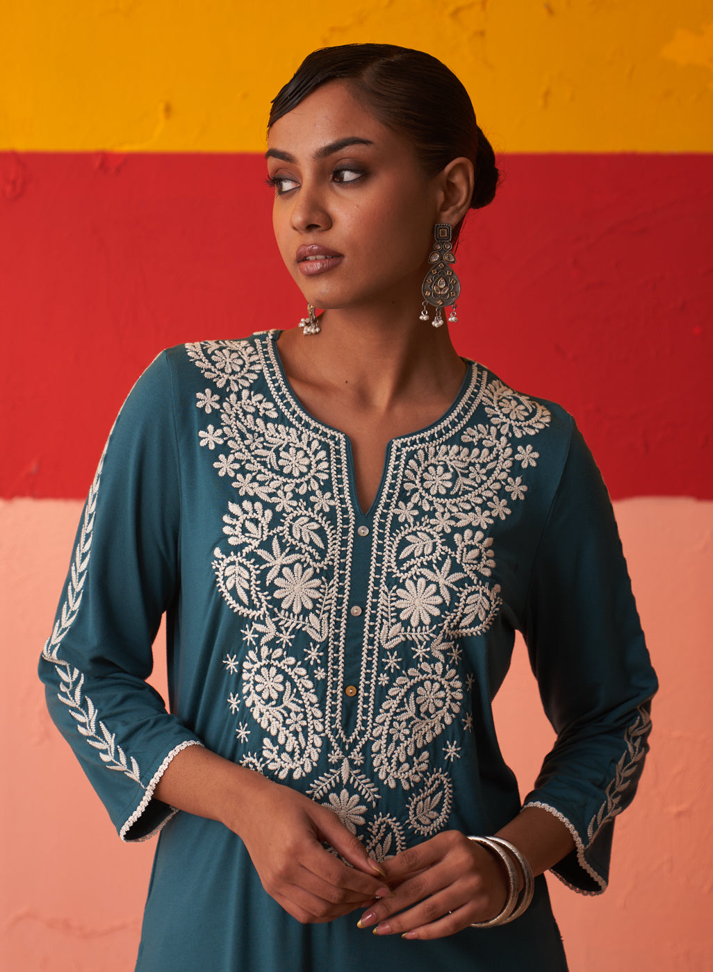 • This thread work kurta is a must have for every woman’s winter wardrobe.