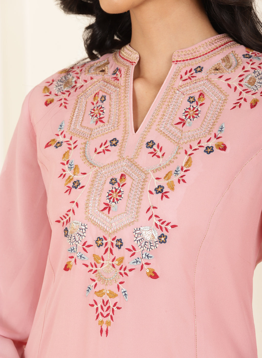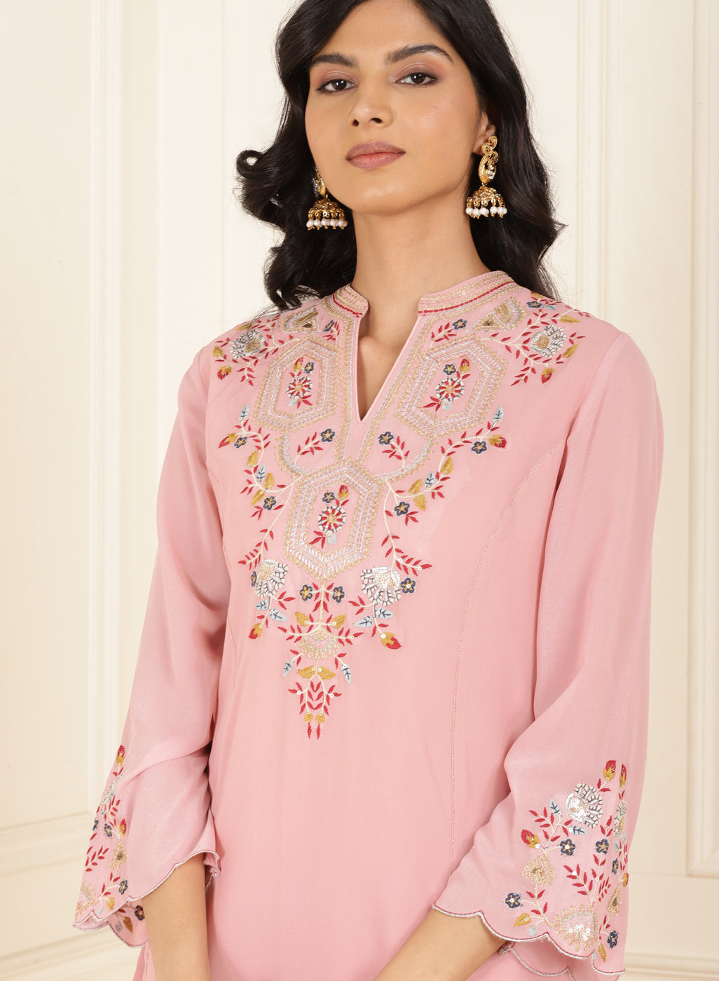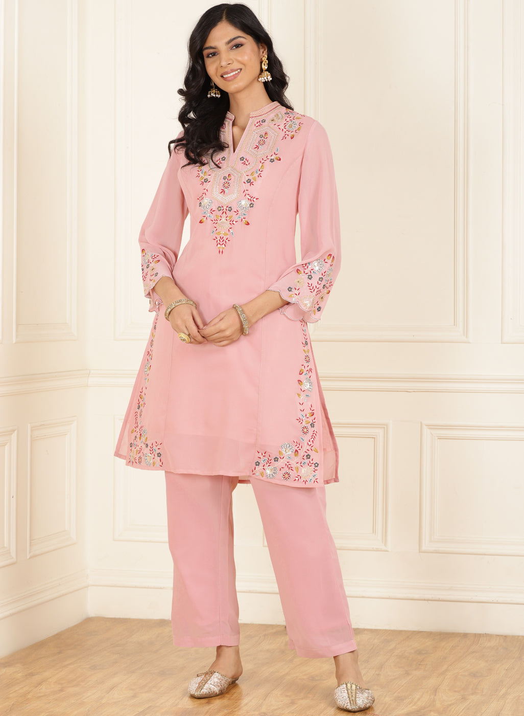 Sage Green Embroidered Cotton Linen Slub Kurta Set