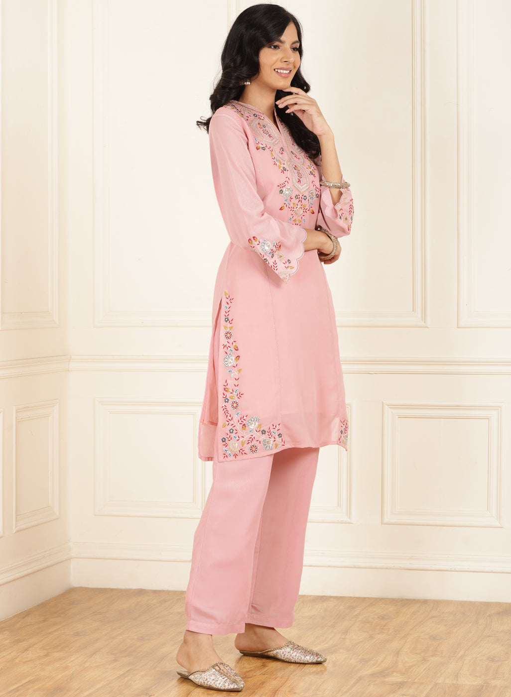 Sage Green Embroidered Viscose Brocade Kurta Set