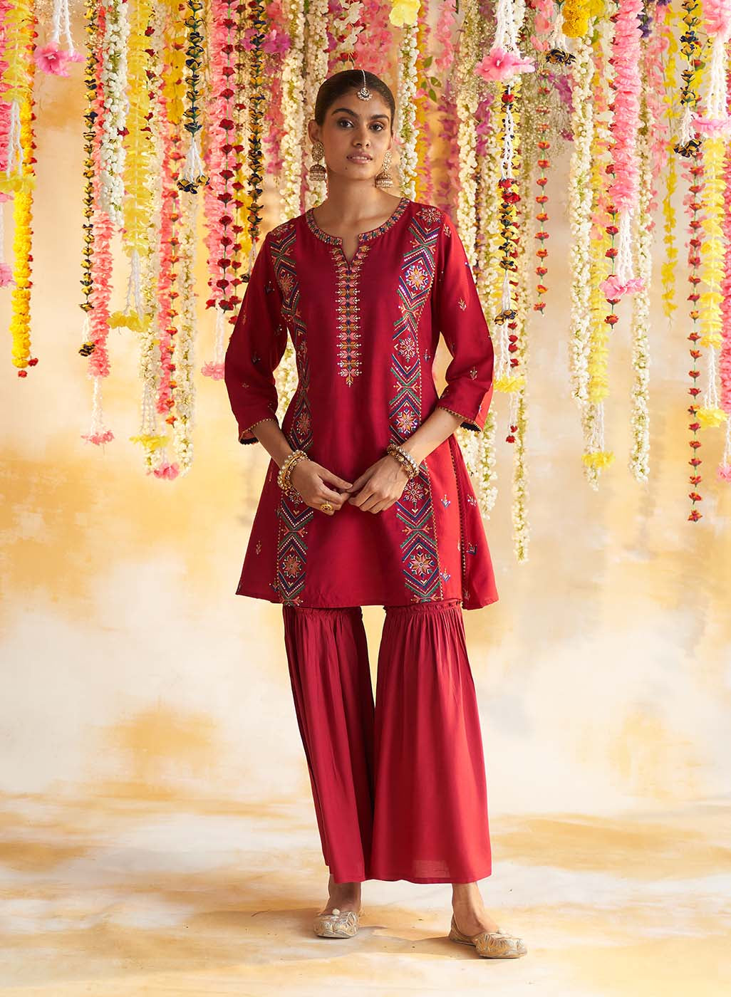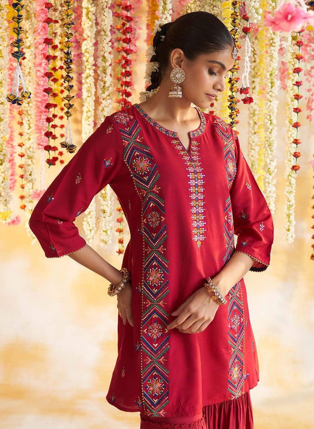Niya Ivory Embroidered Cotton Linen Slub Long Top for Women