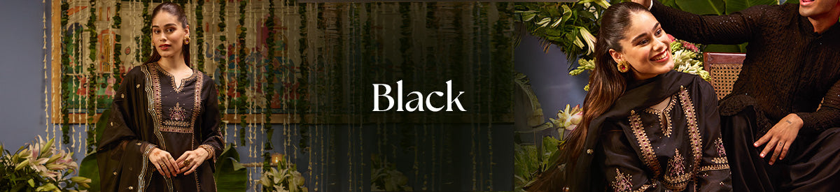 Black Embroidered Cotton Viscose Crinkle Kurta Set