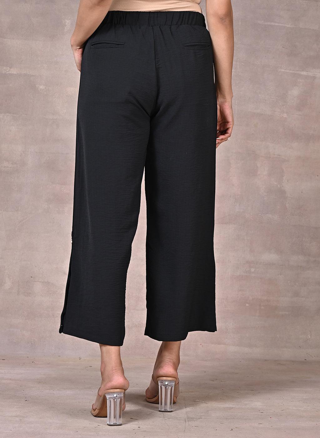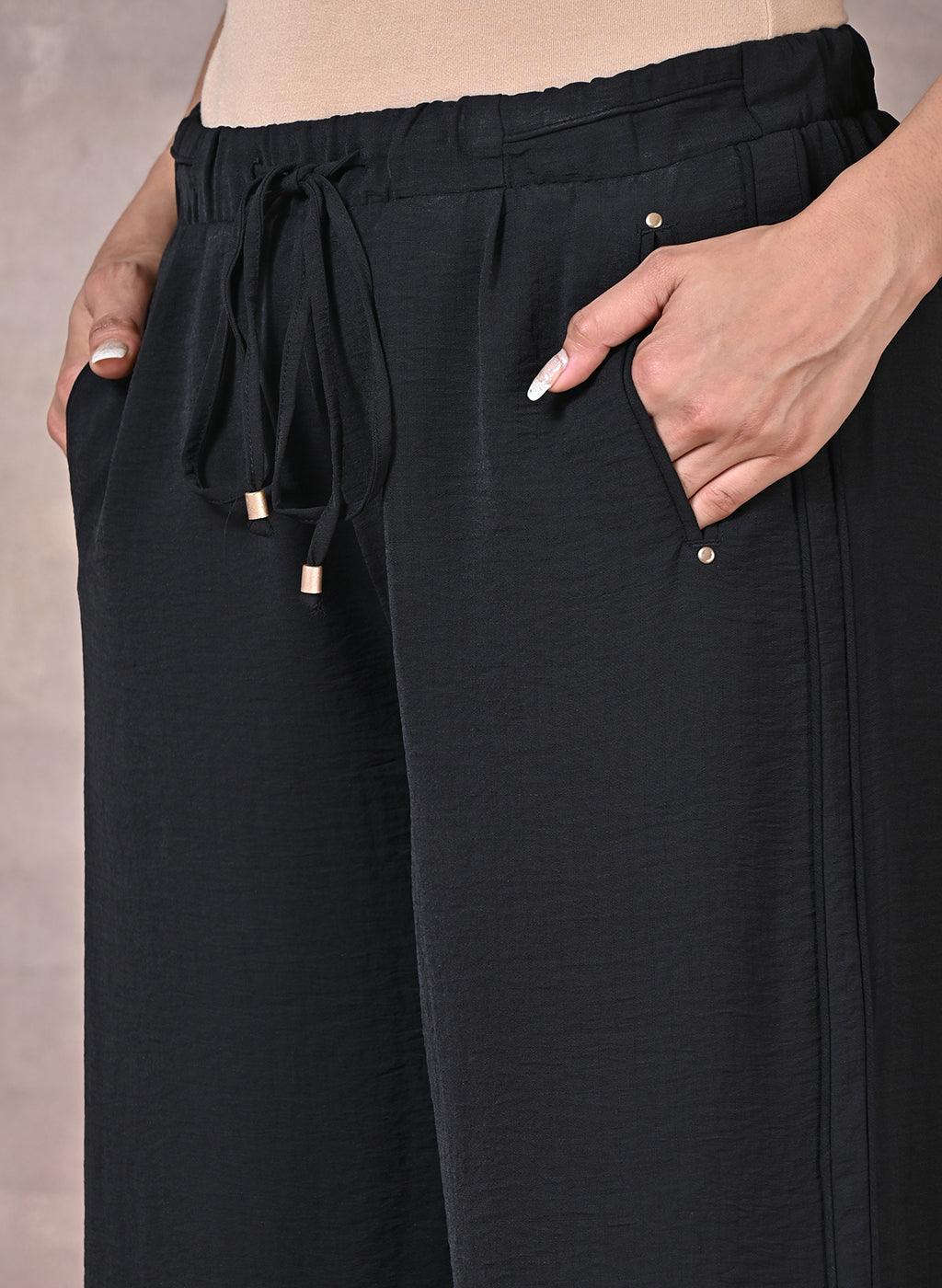 Black Embroidered Cotton Viscose Crinkle Kurta Set