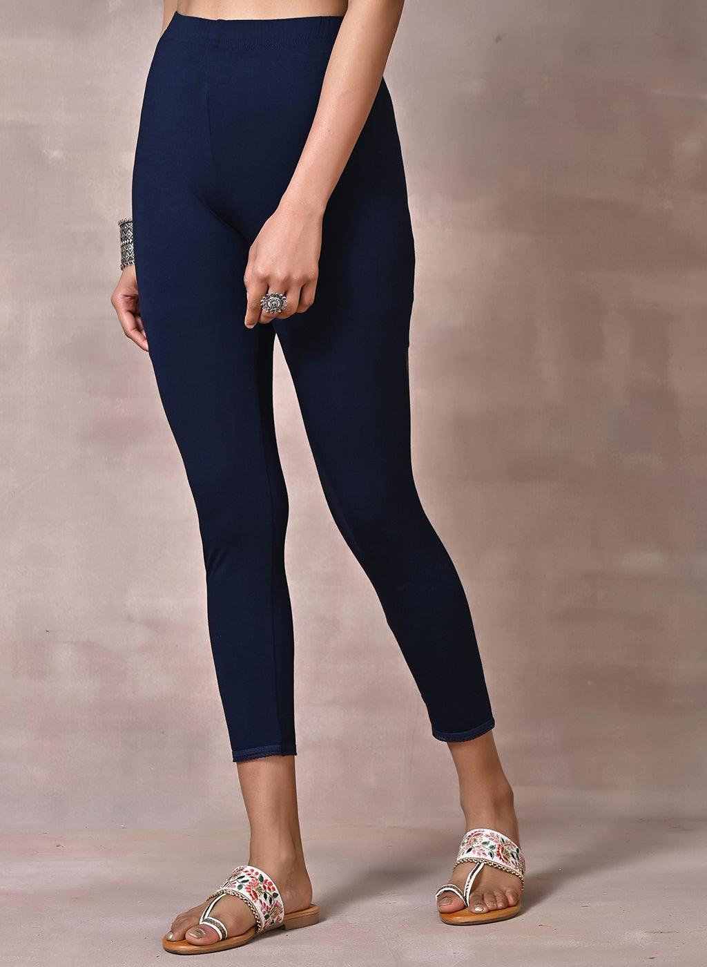 Farah Navy Blue Viscose Lycra Leggings for Women