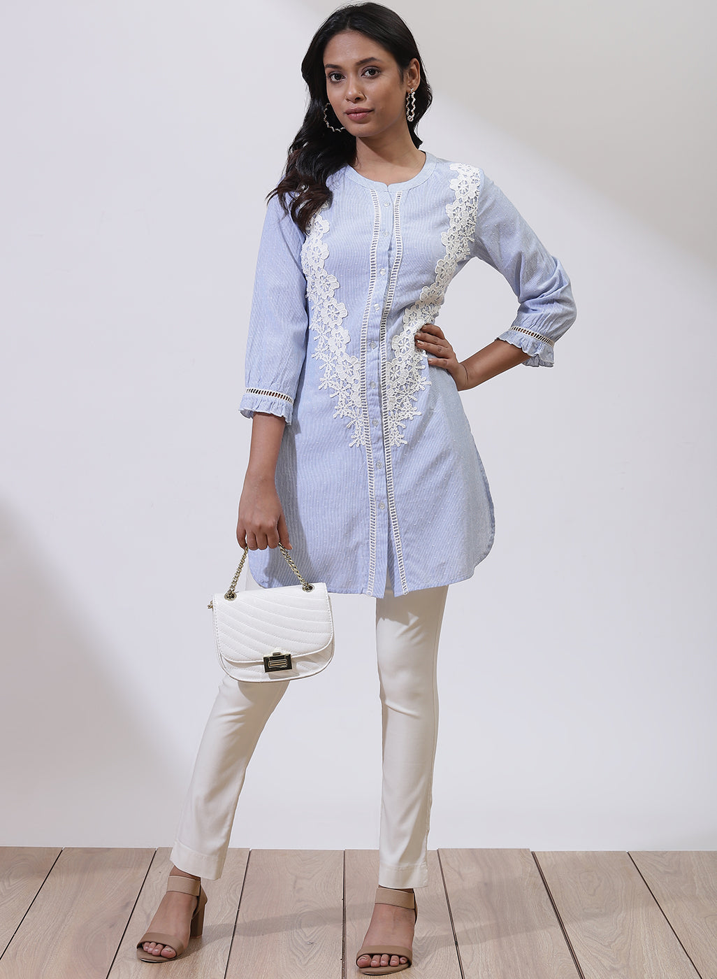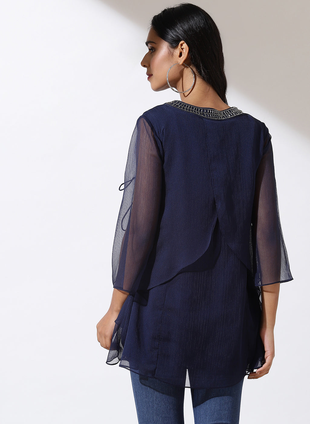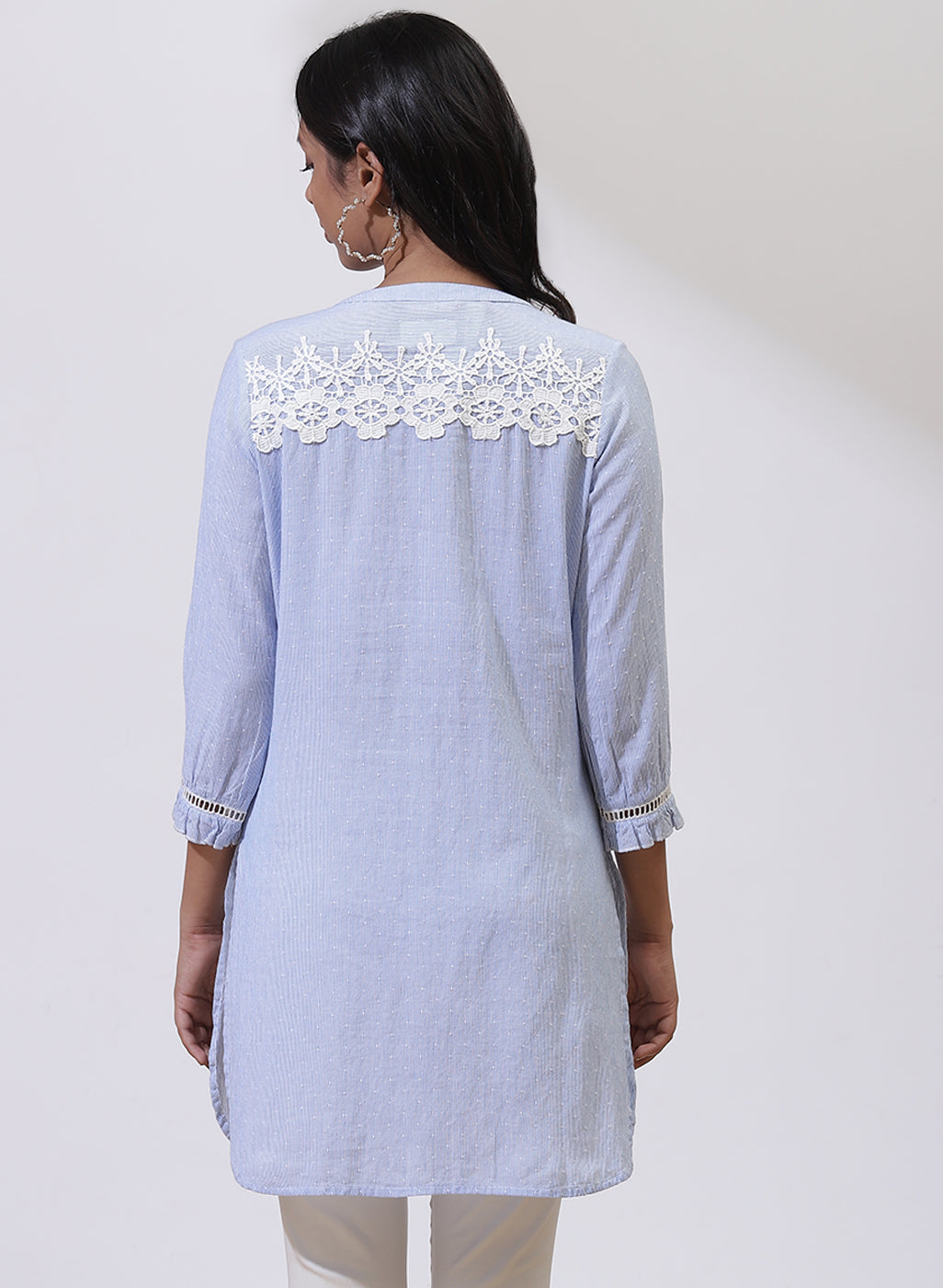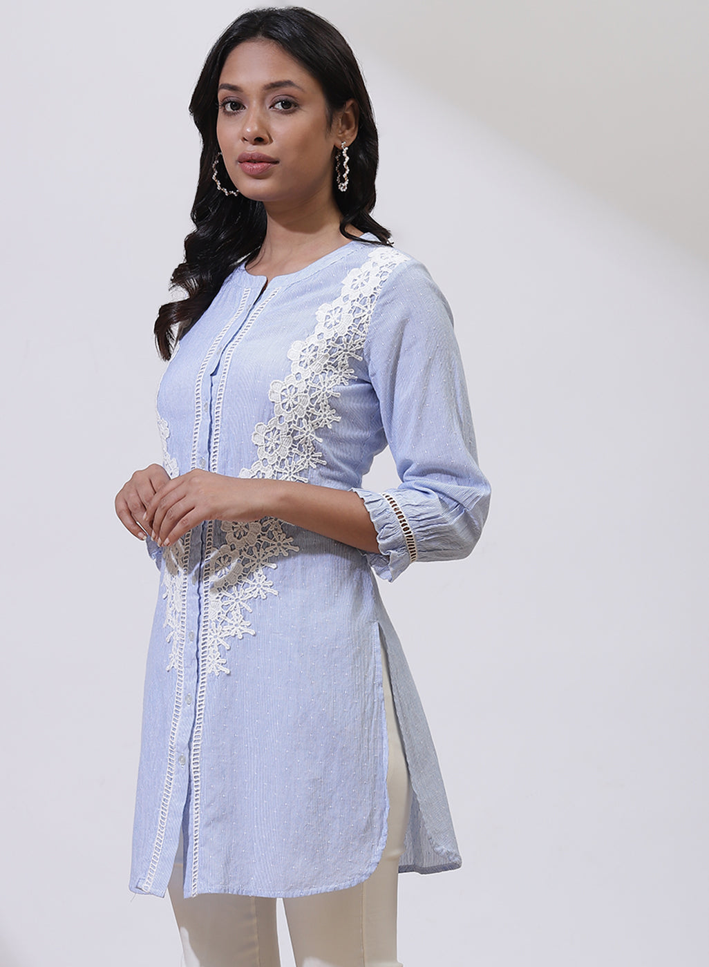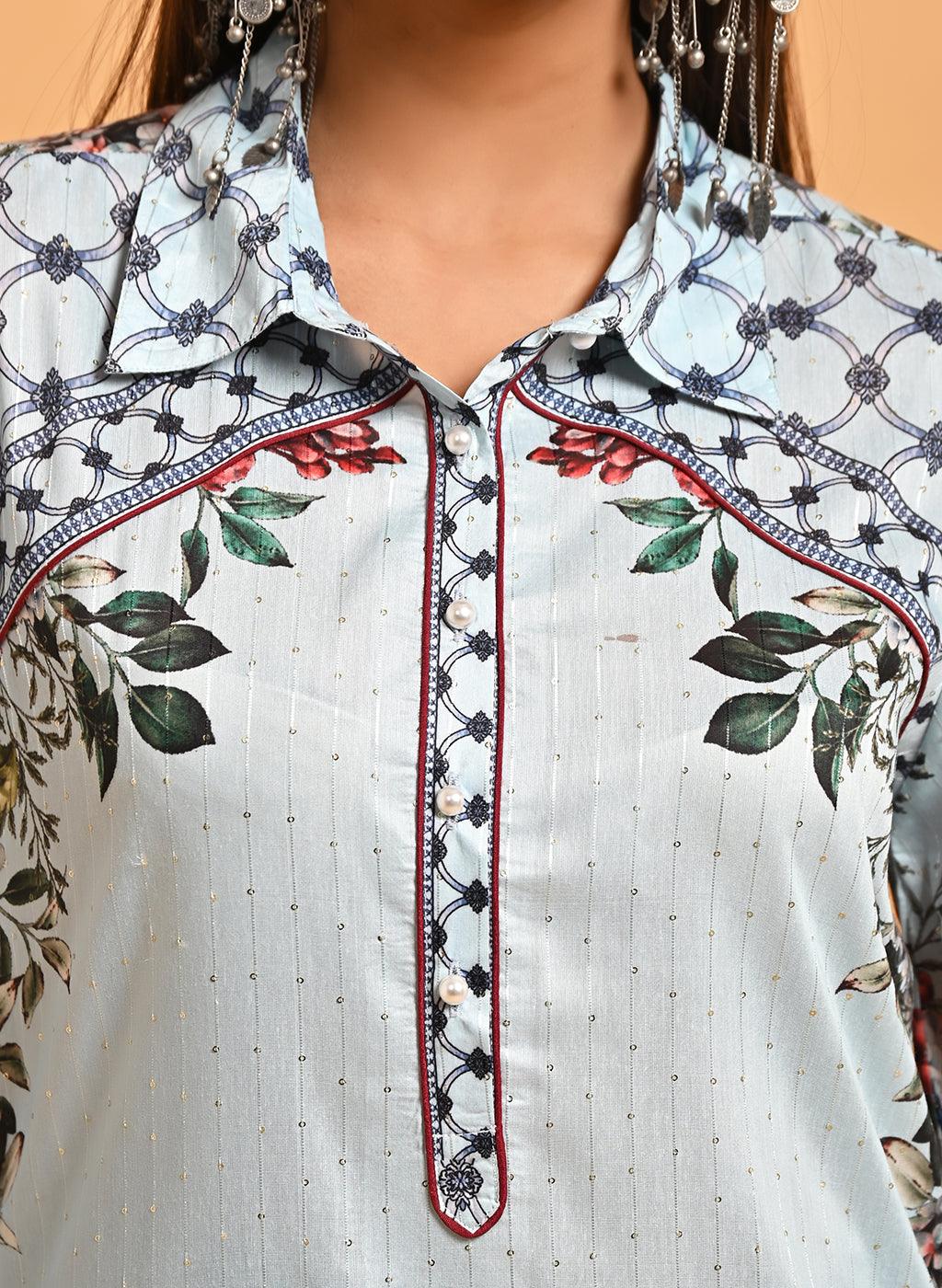 Sky Blue Embroidered Crinkle Viscose Shirt