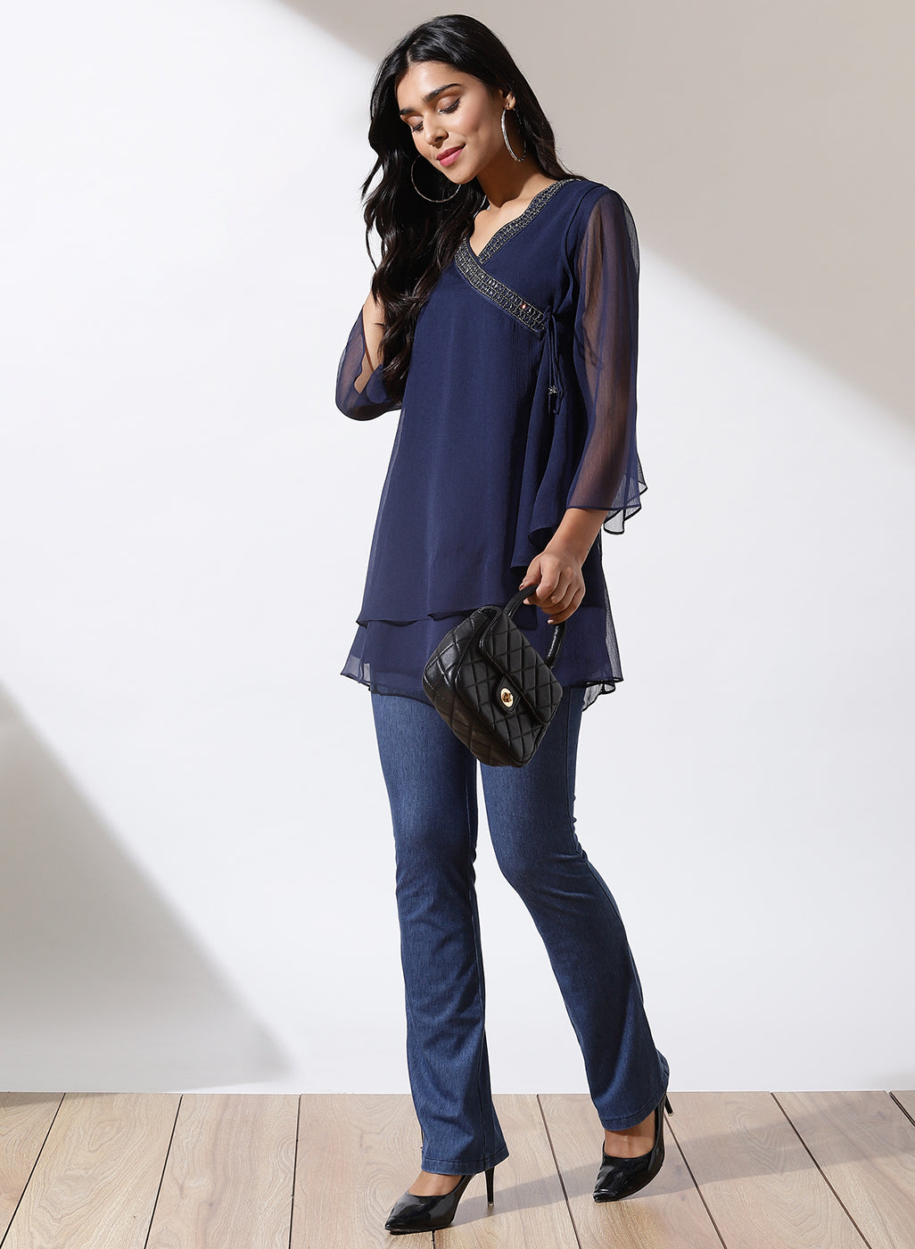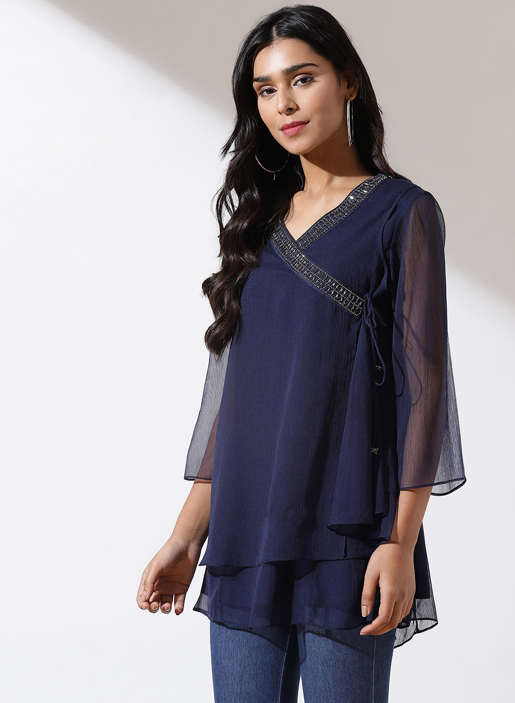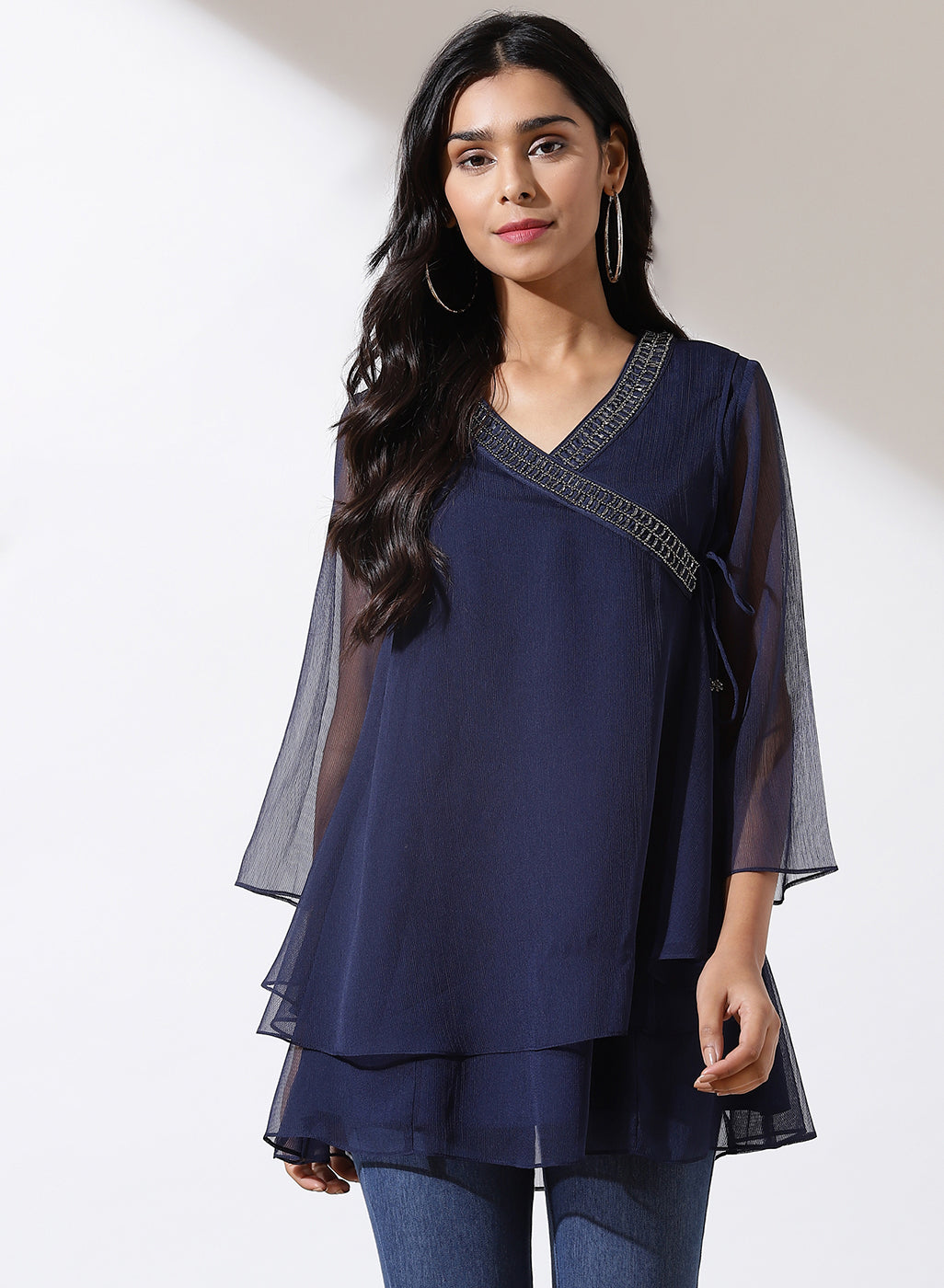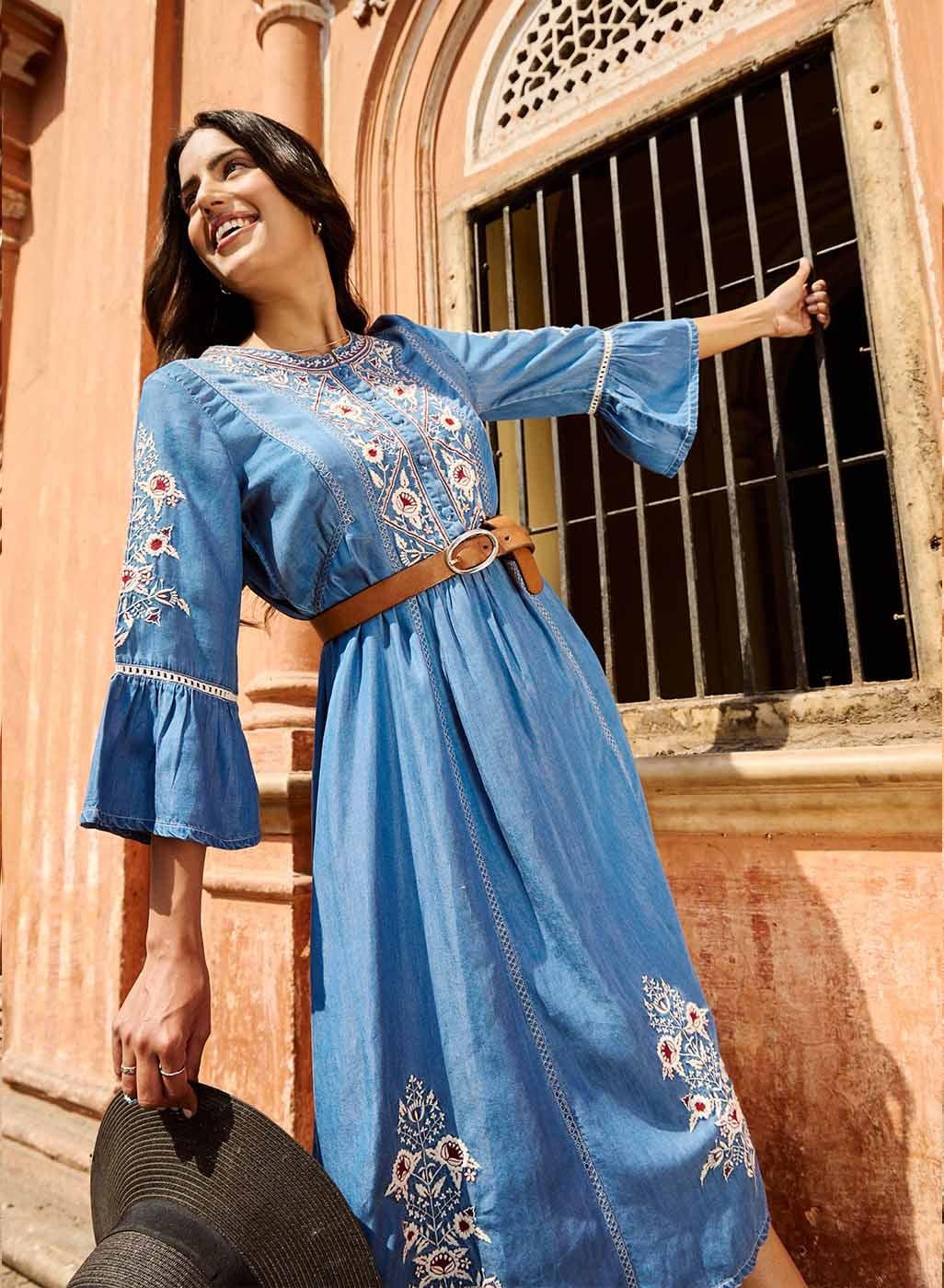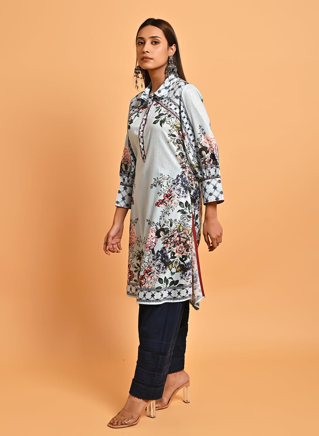 Sky Blue Embroidered Crinkle Viscose Shirt