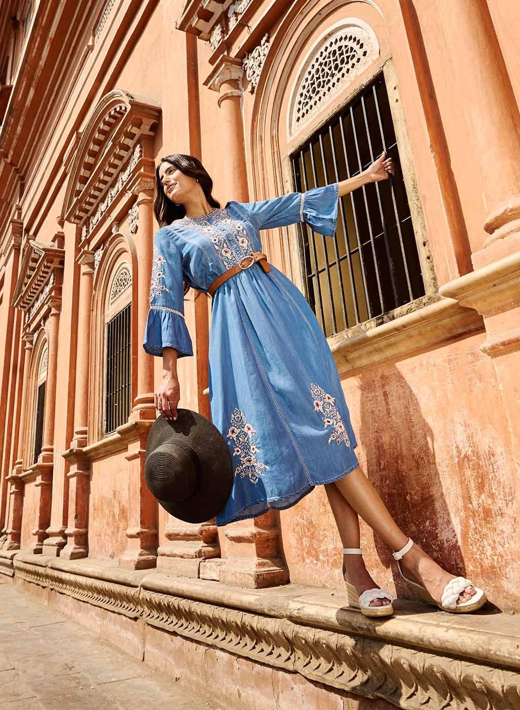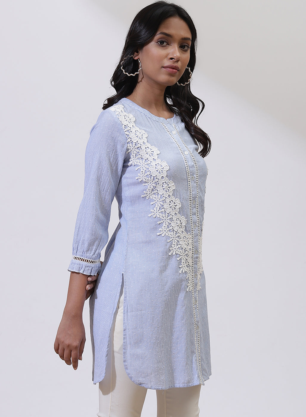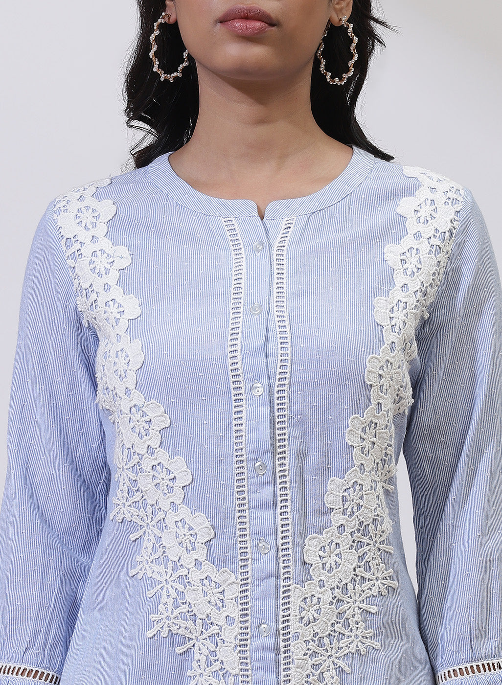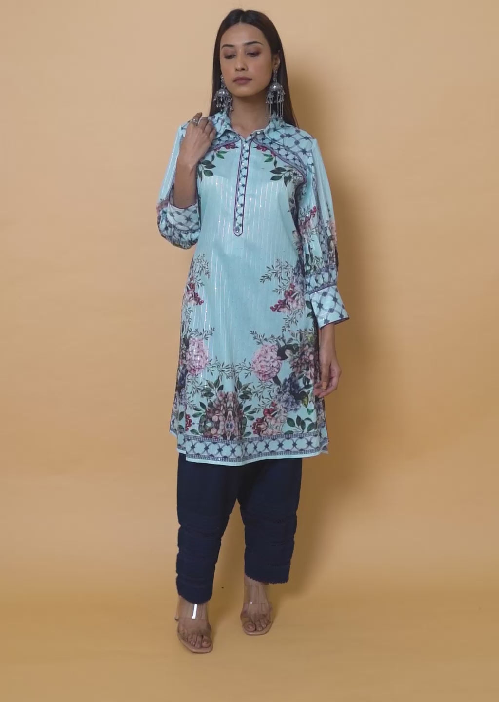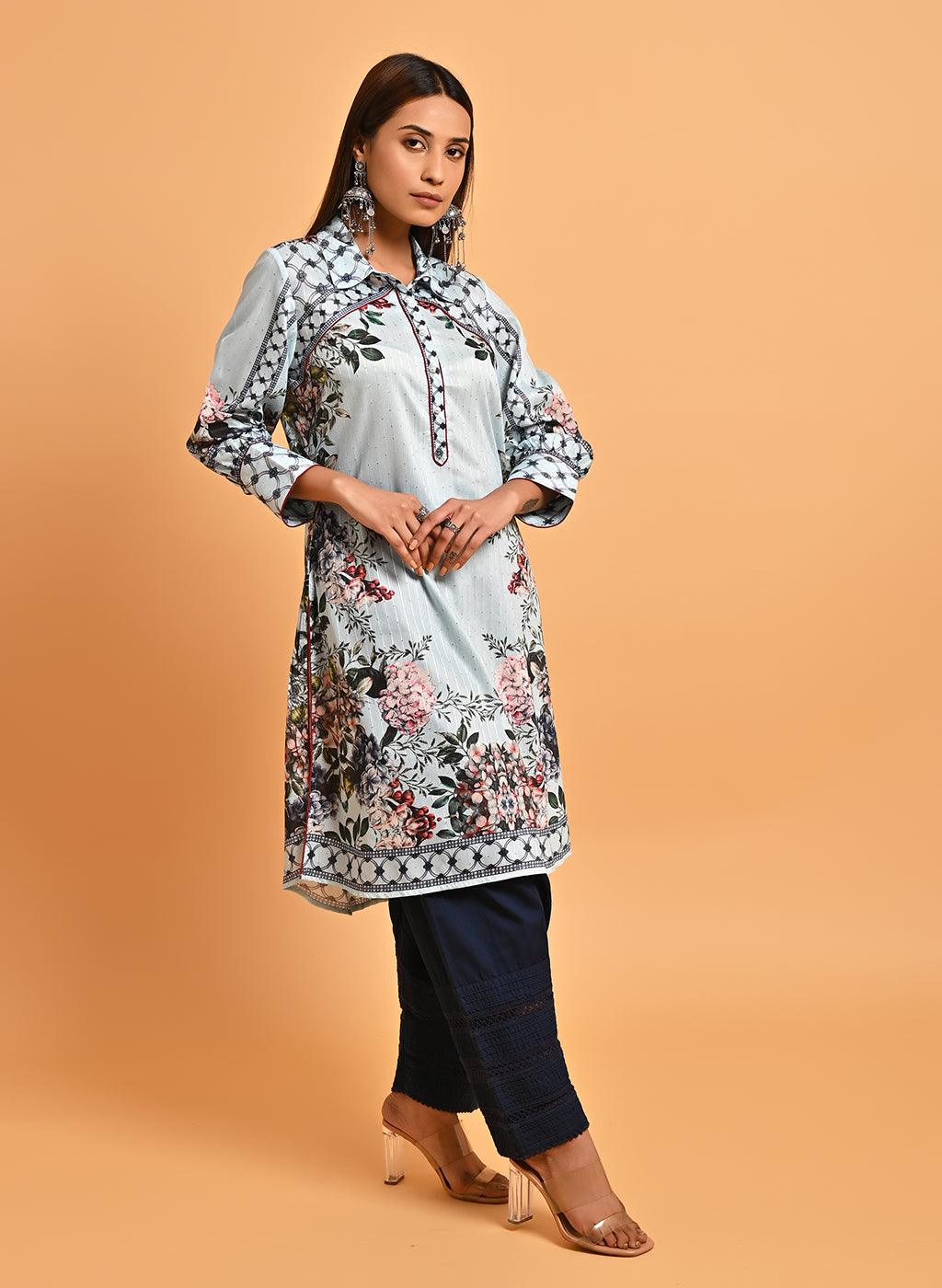 Sky Blue Embroidered Cotton Flex Kurta Set