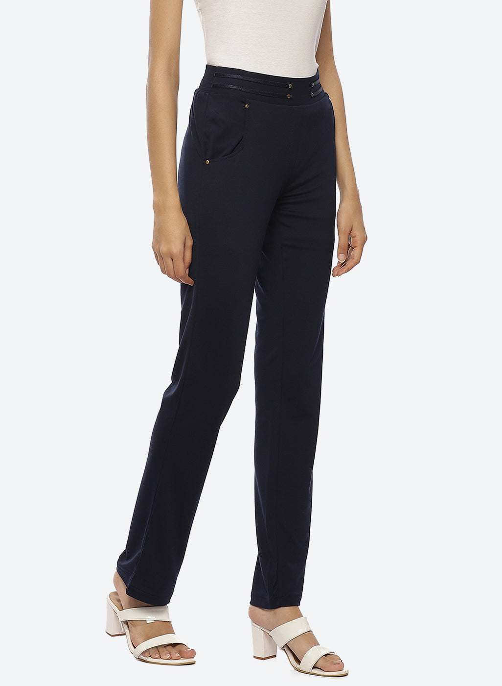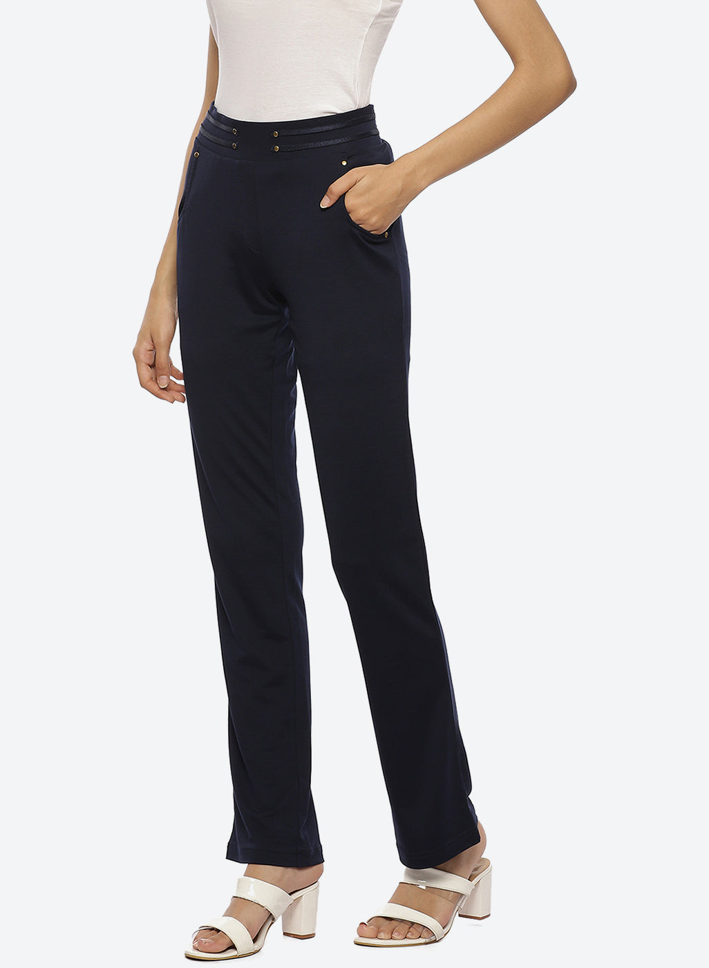 Falak Sky Blue Cotton Linen Relaxed Fit Pants for Women