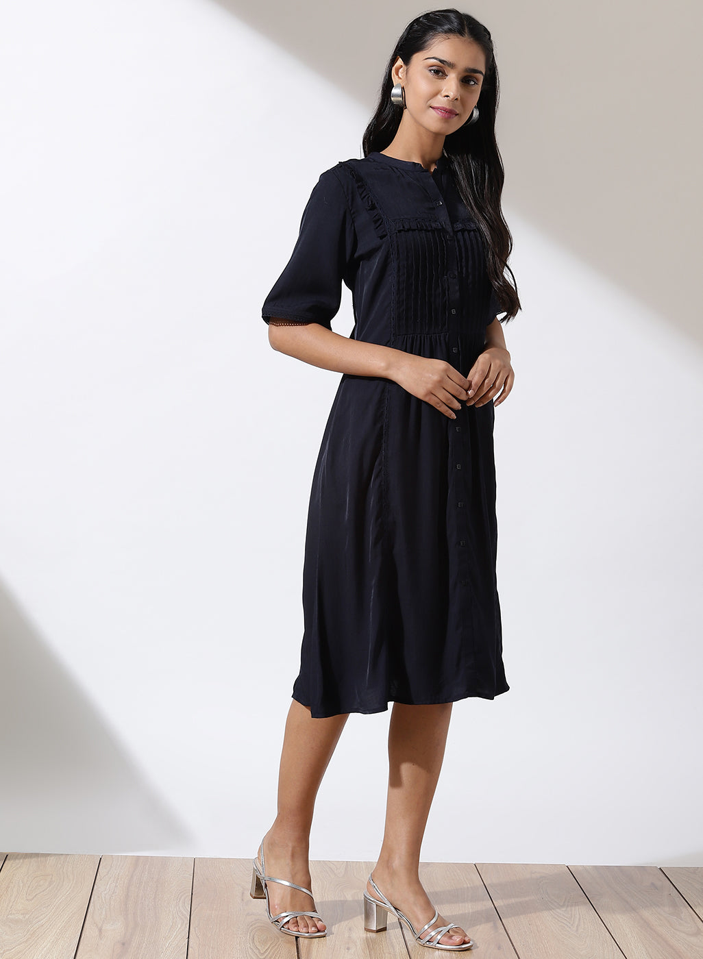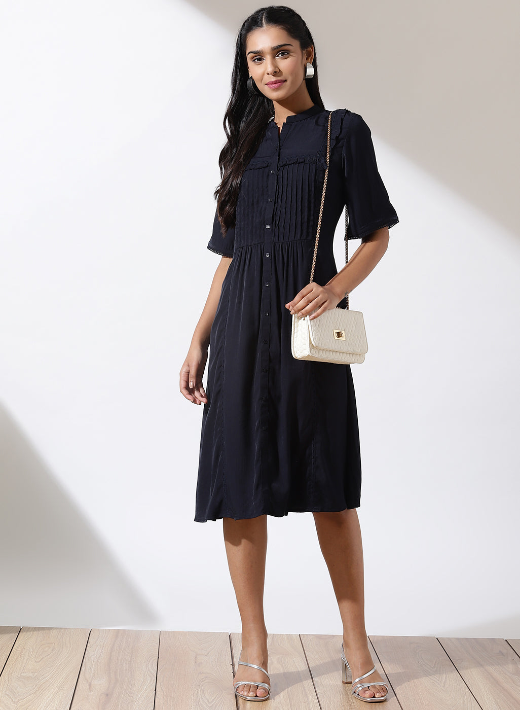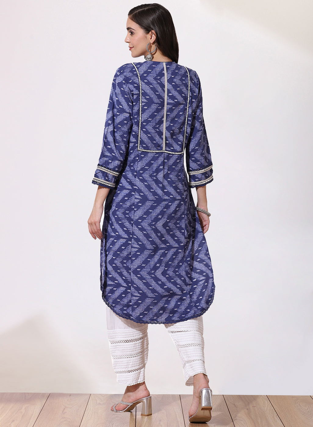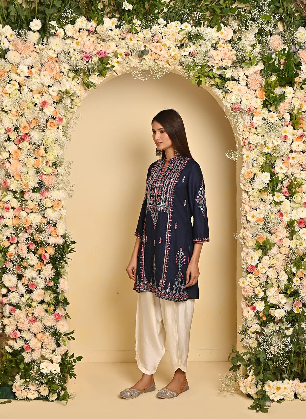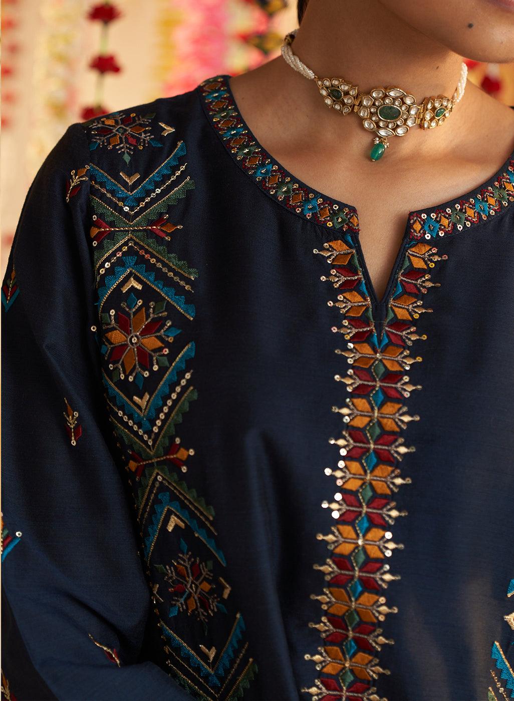 Shirin Navy Blue Chanderi Embroidered Kurta Set for Women