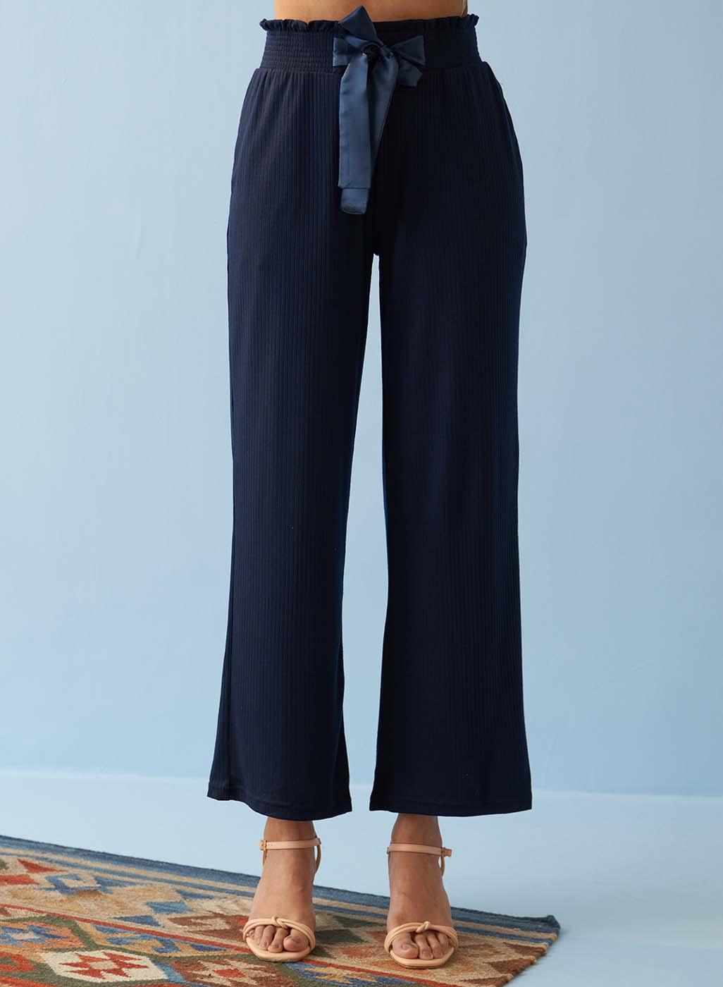 Navy Blue Palazzo with Hem Detail - Lakshita