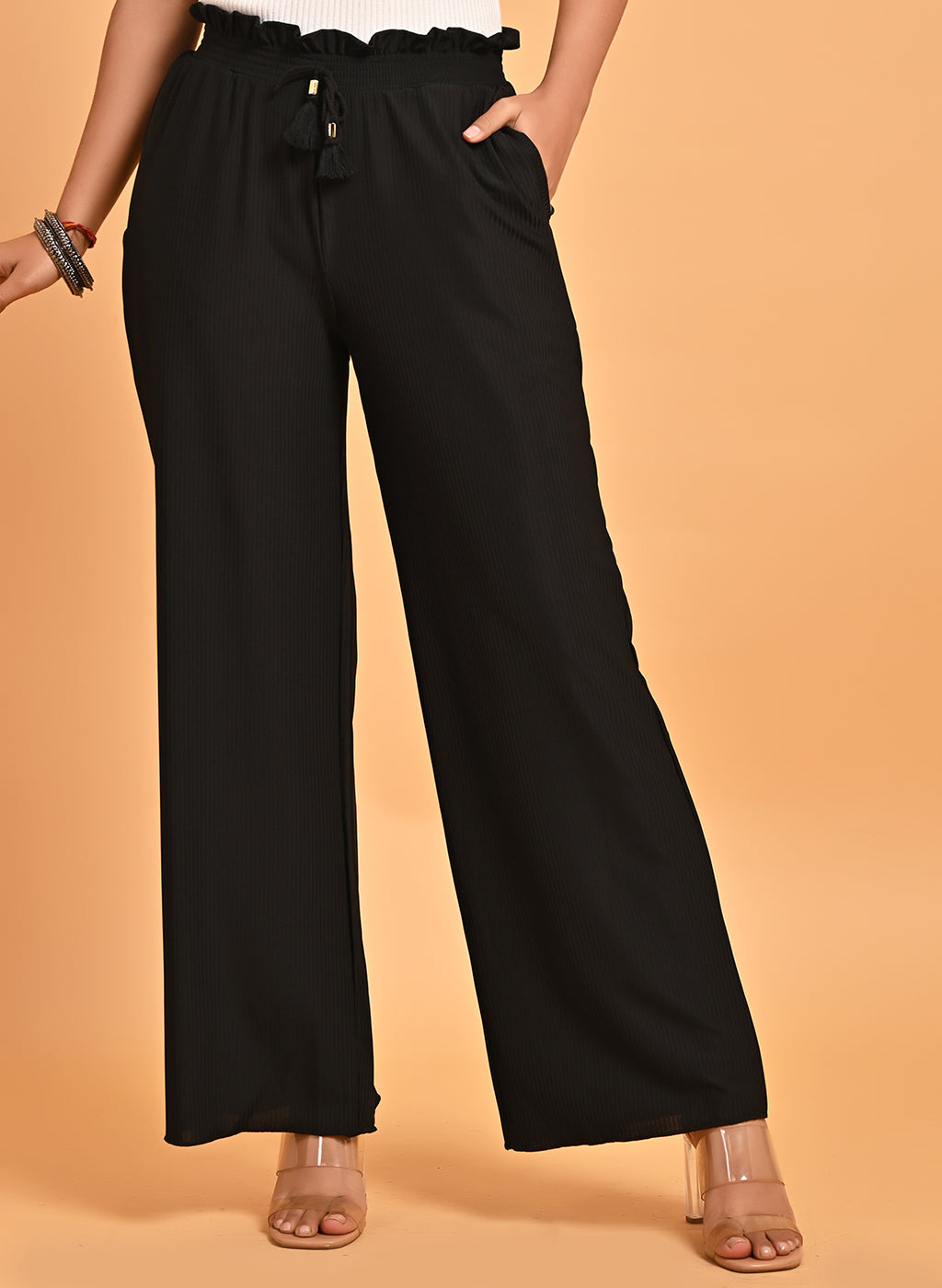 Ira Black Embroidered Relaxed Fit Palazzo Pants for Women