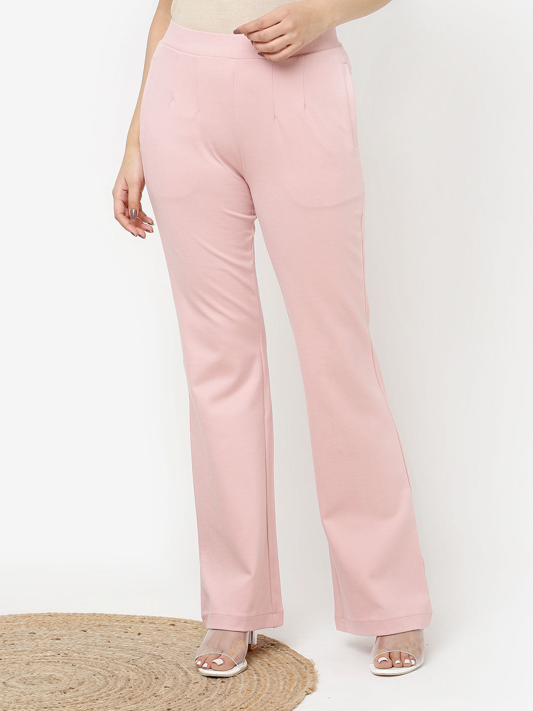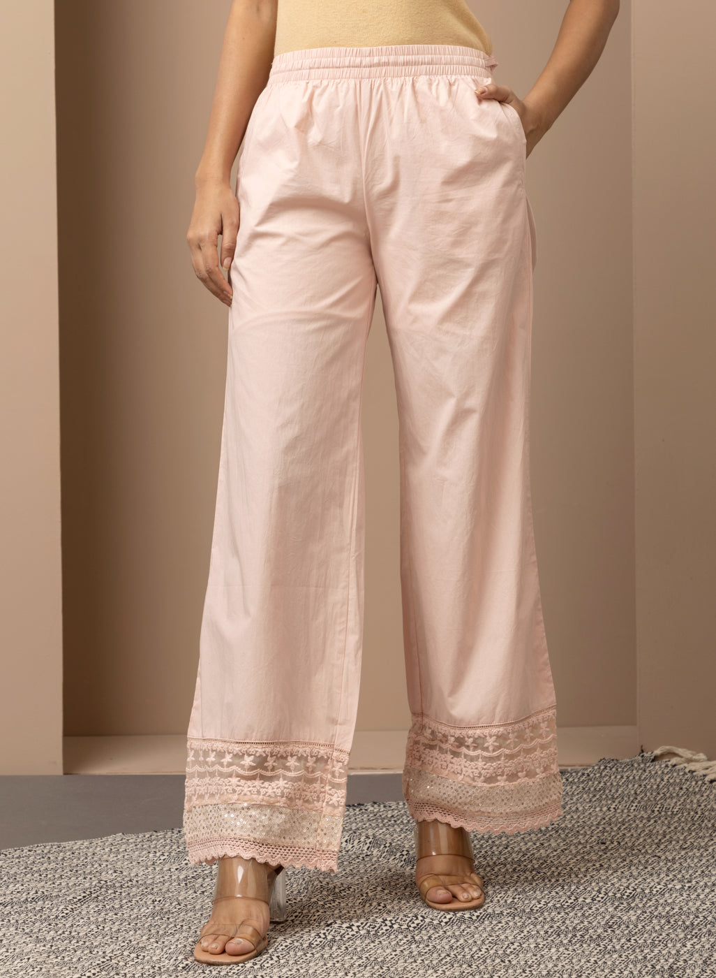 Pink Straight Fit Palazzo with Smocking Waist Band