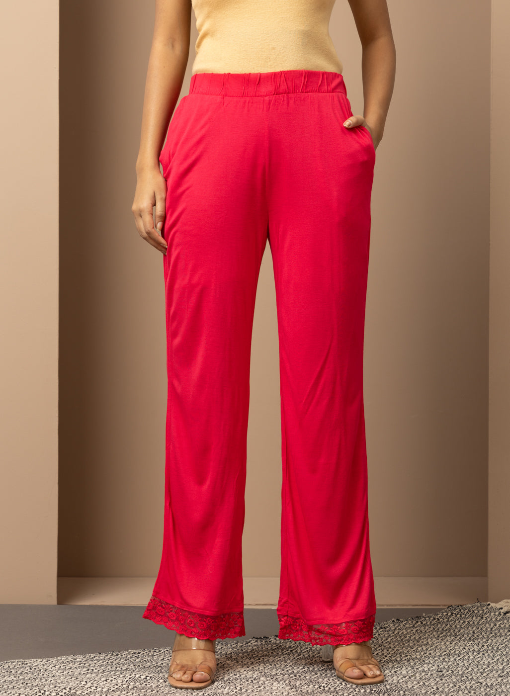 Sia Fuchsia Relaxed Fit Viscose Lycra Pants for Women