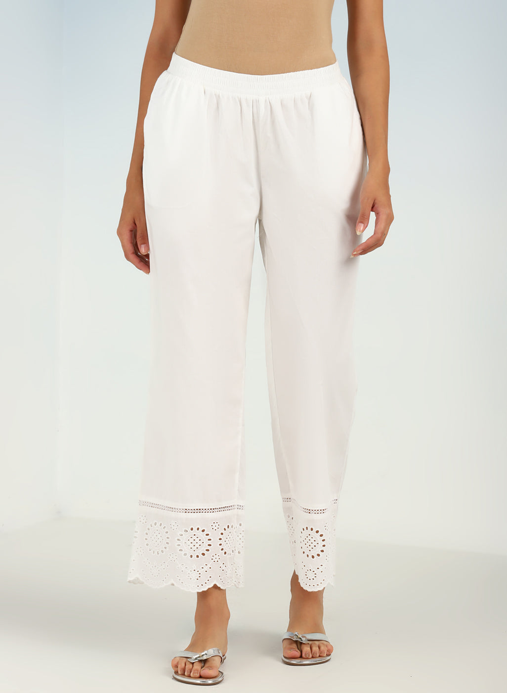 Navya White Embroidered Relaxed Fit Palazzo Pants for Women
