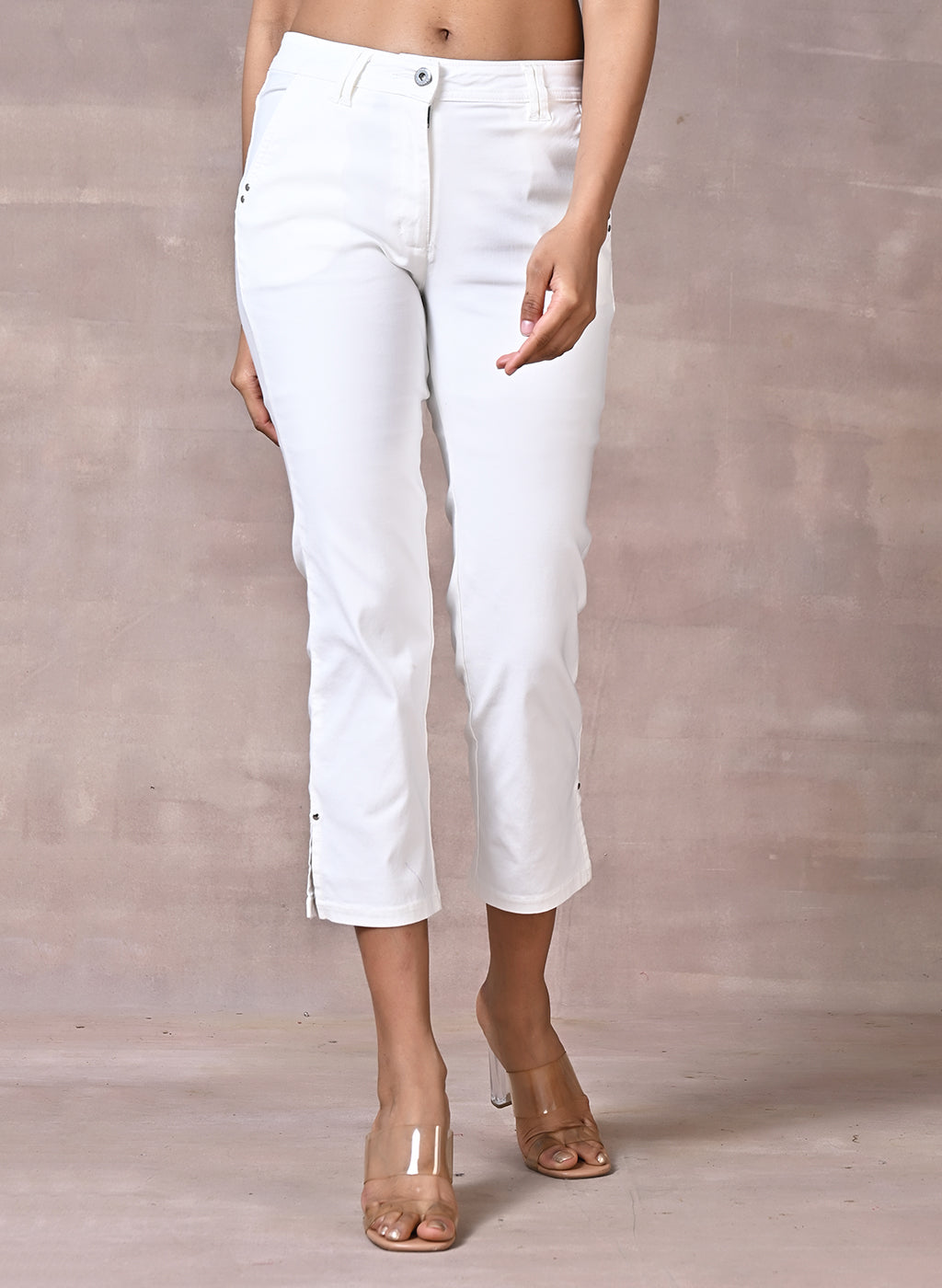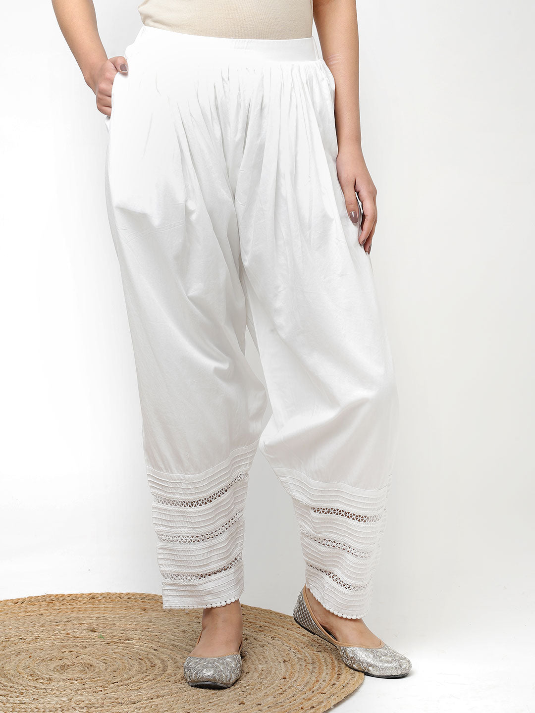 Mehreen White Cotton Relaxed Fit Cotton Trousers for Women