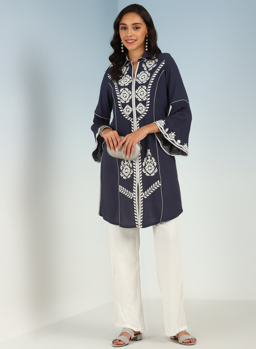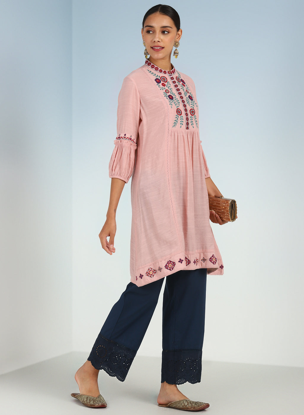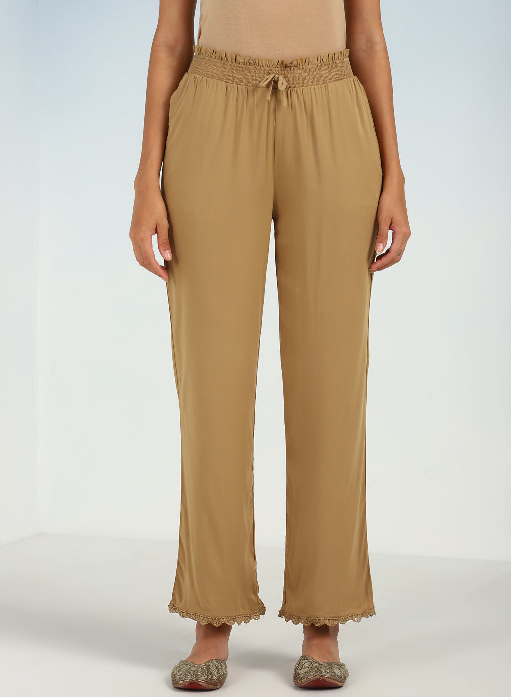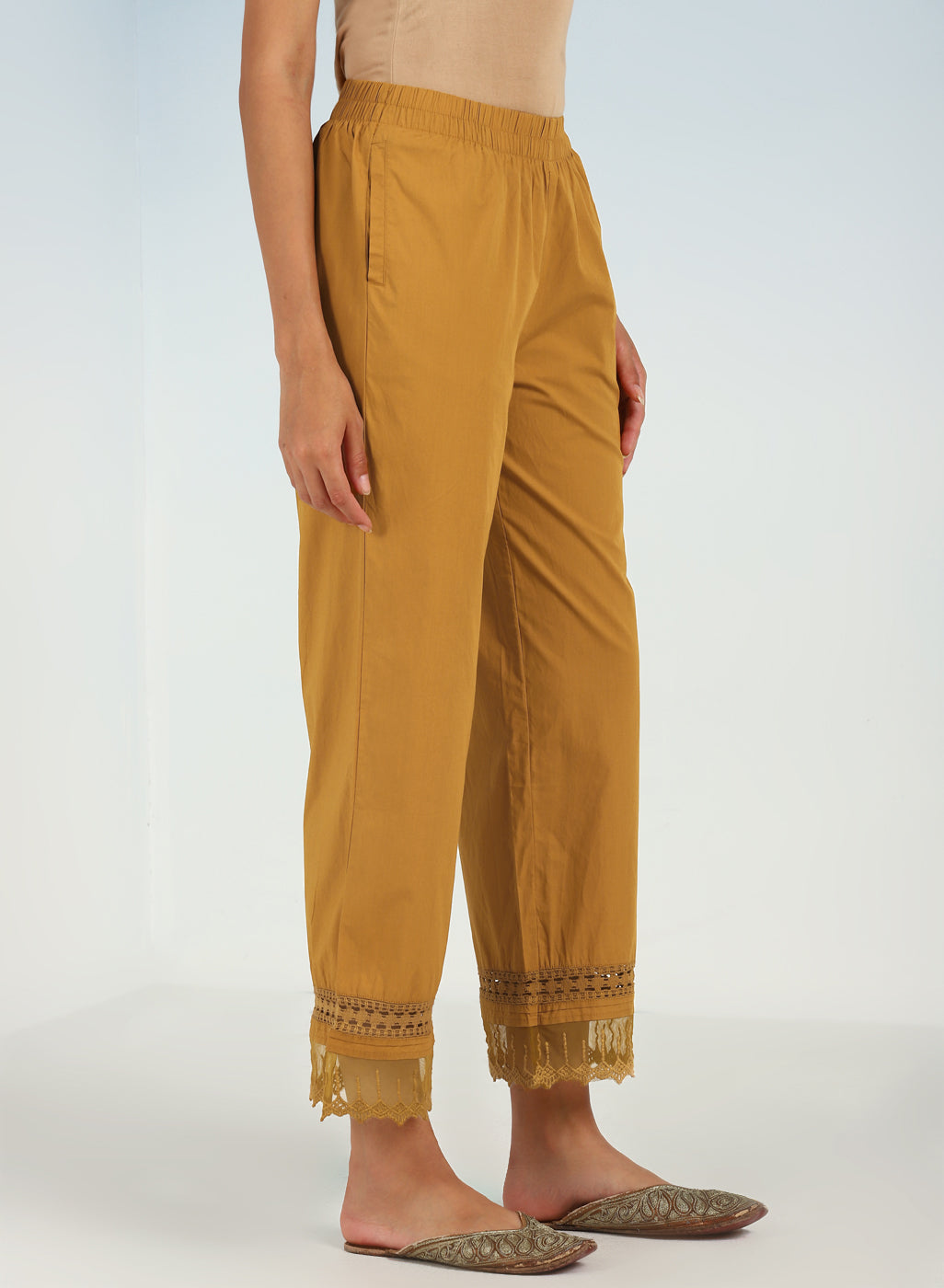 Blue Pure Cotton Ankle-length Palazzo for Women with Detailing on the Hem