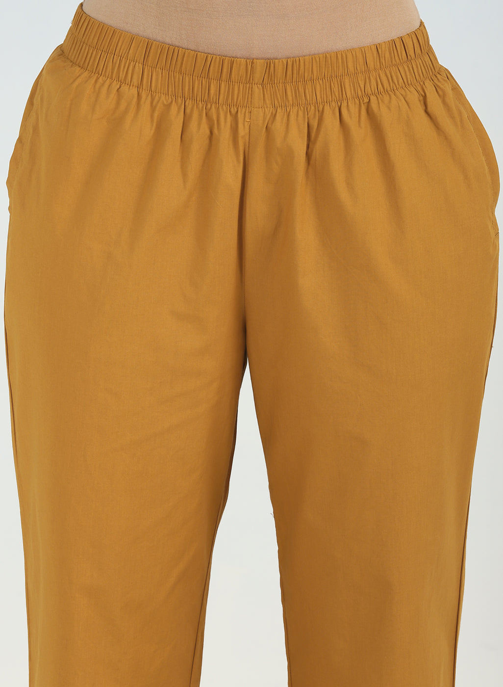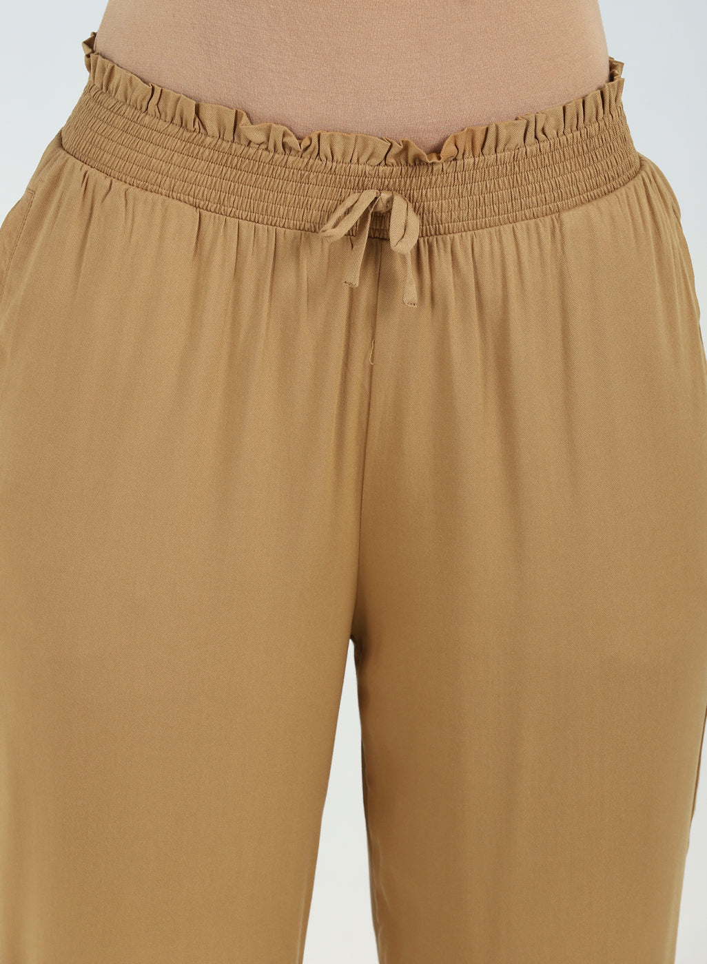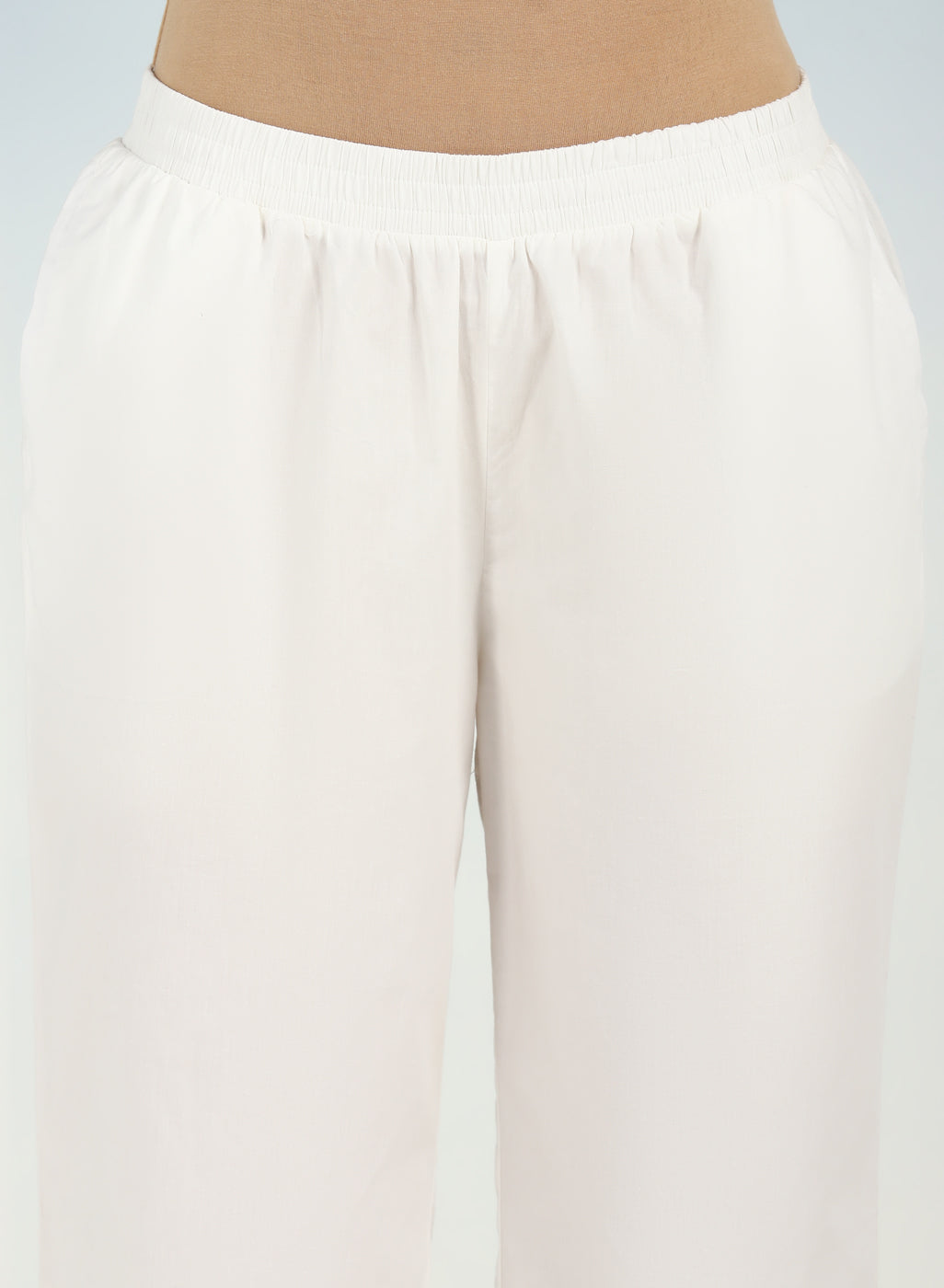 Ivory Plain Straight-fit Pants with a Drawstring Waist and Pockets