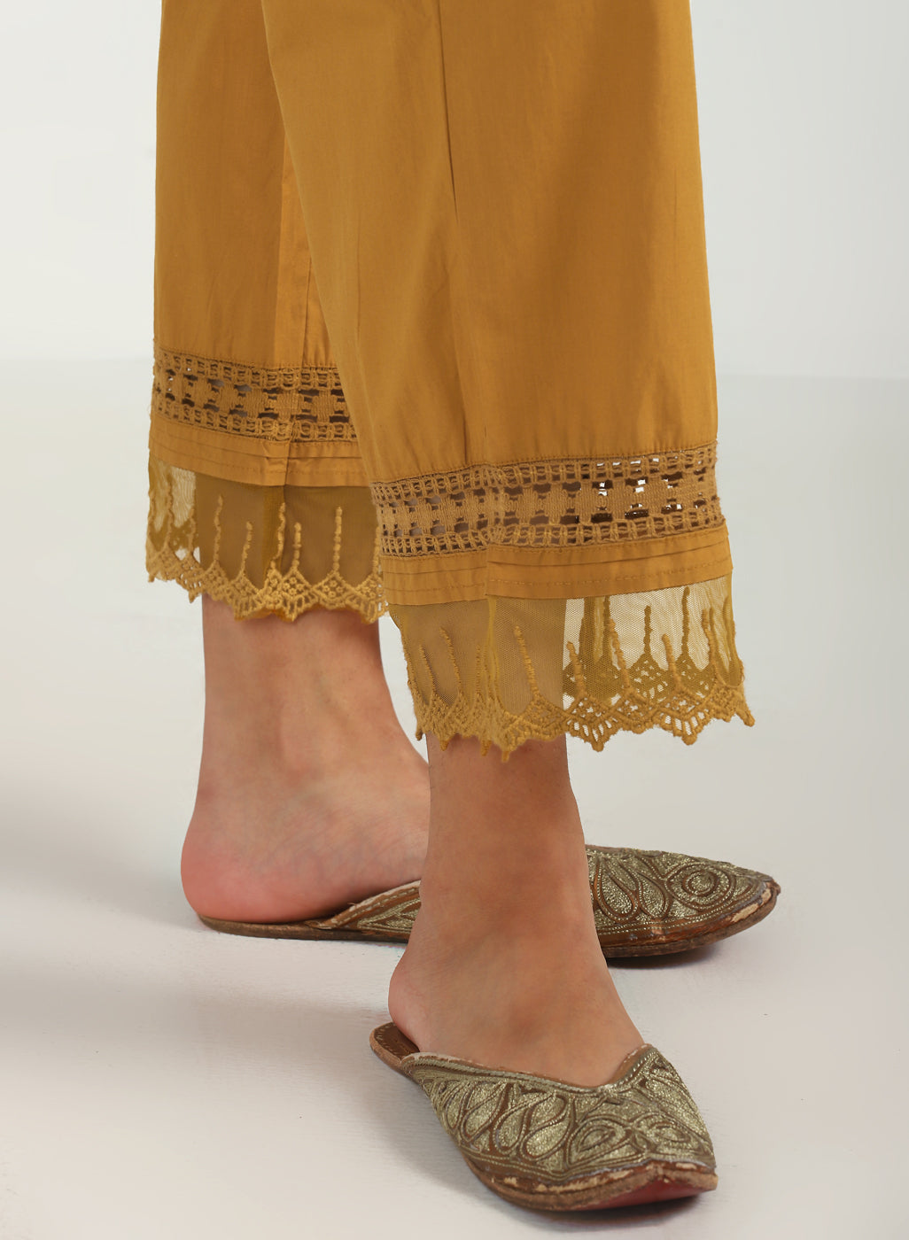 Black Pleated Salwar for Women with Lace Work on the Hem