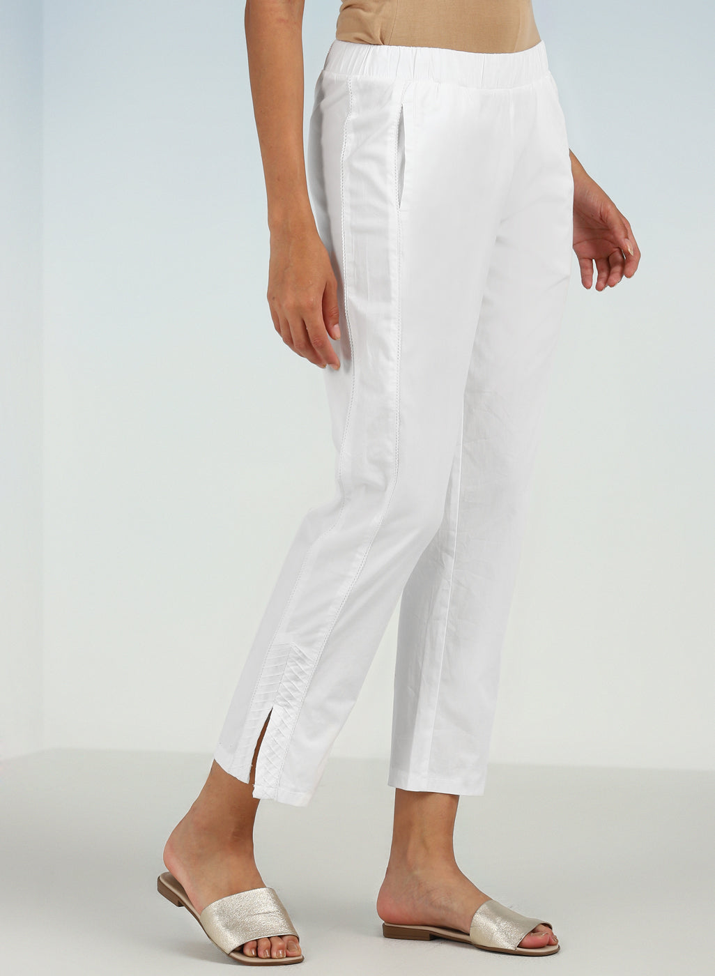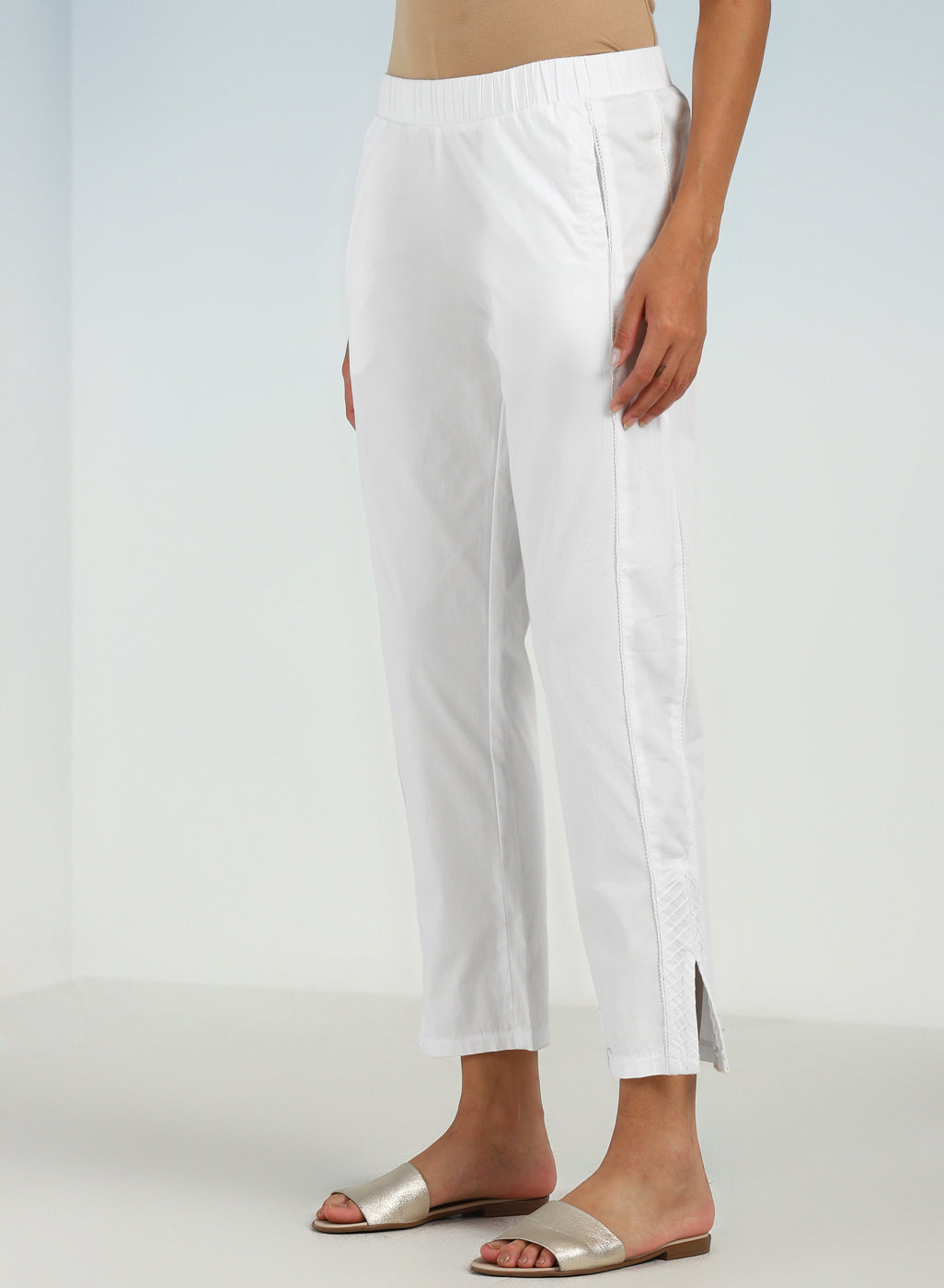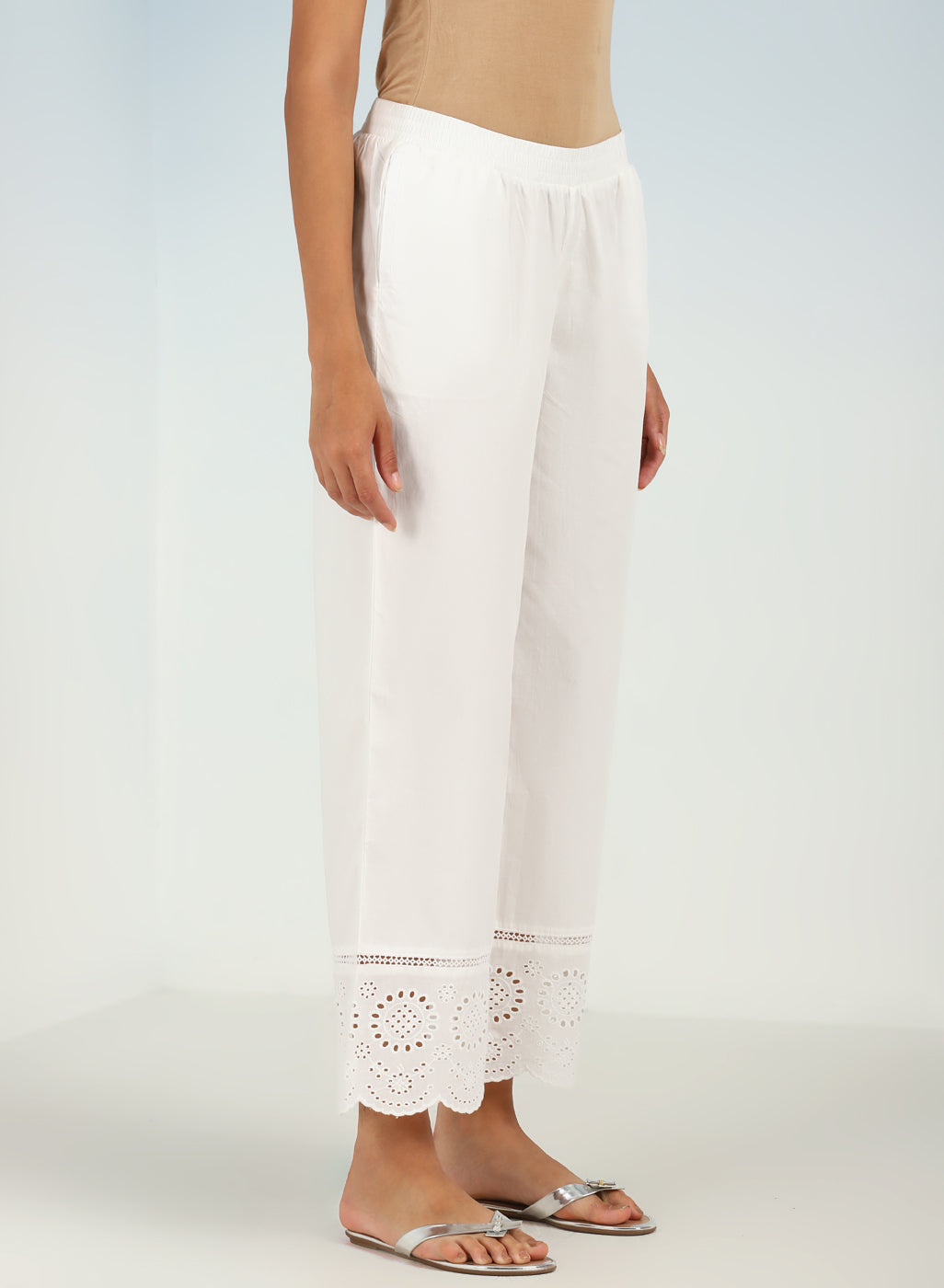 Mehreen White Cotton Relaxed Fit Cotton Trousers for Women