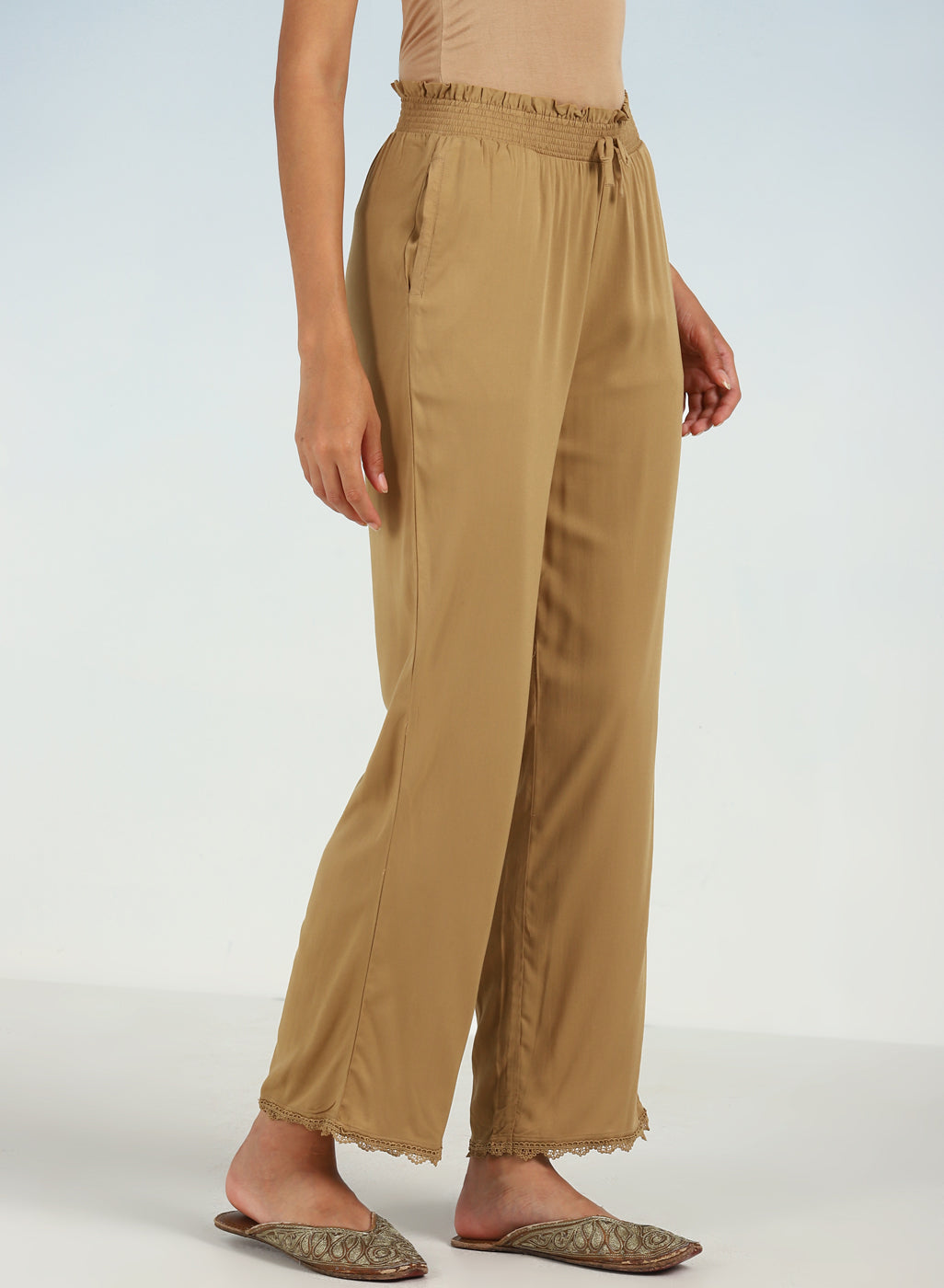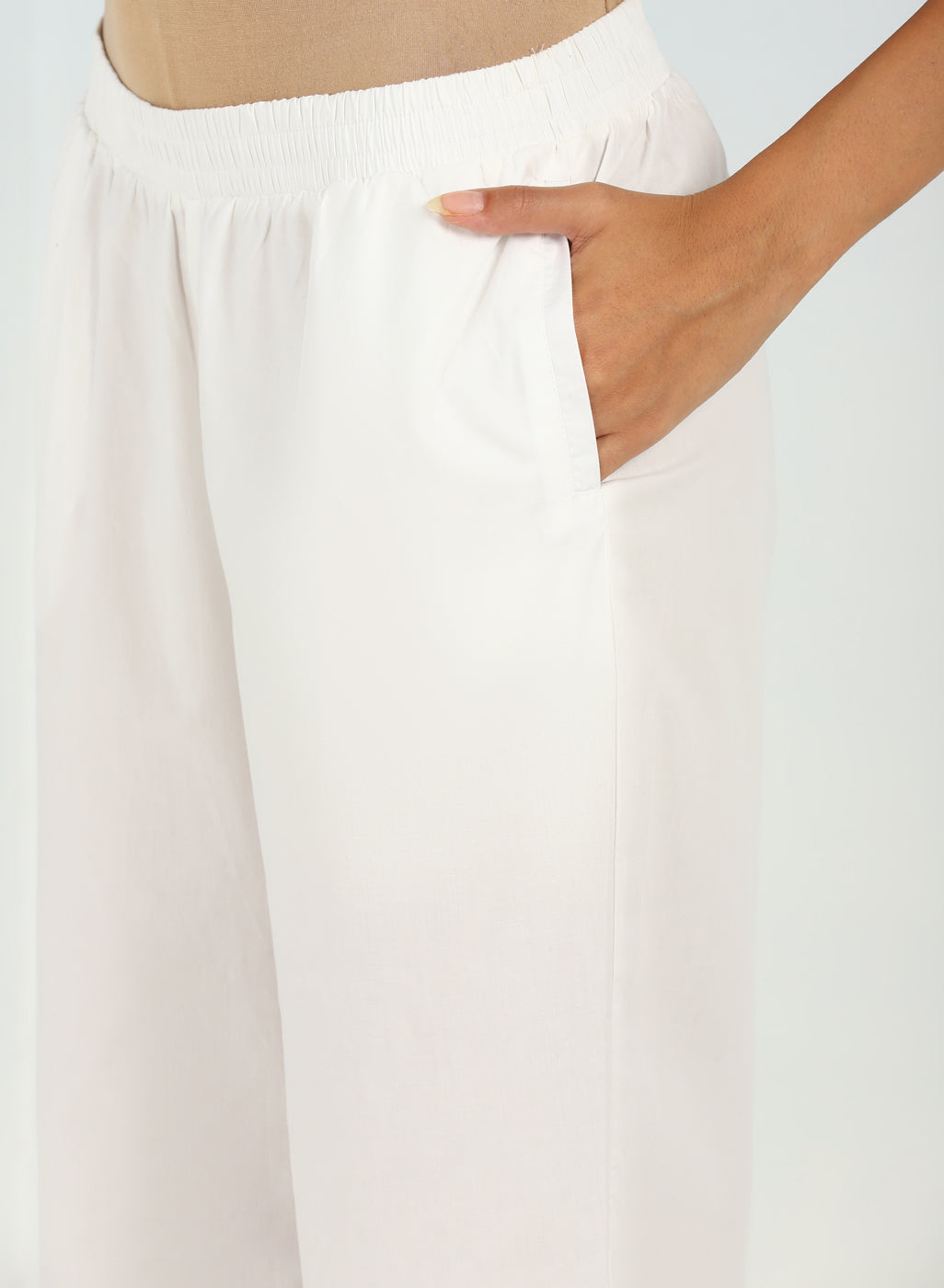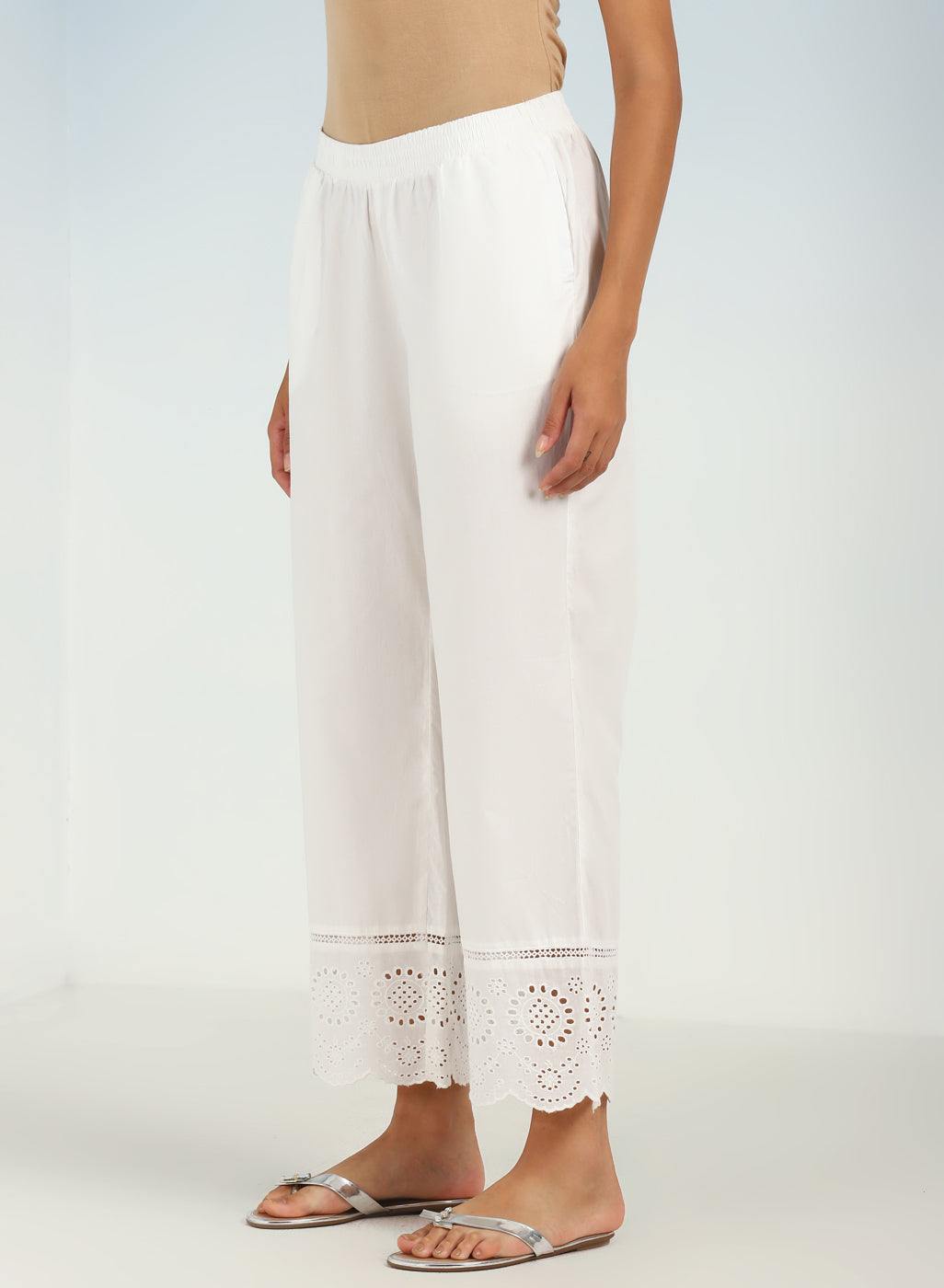 Mehreen White Cotton Relaxed Fit Cotton Trousers for Women