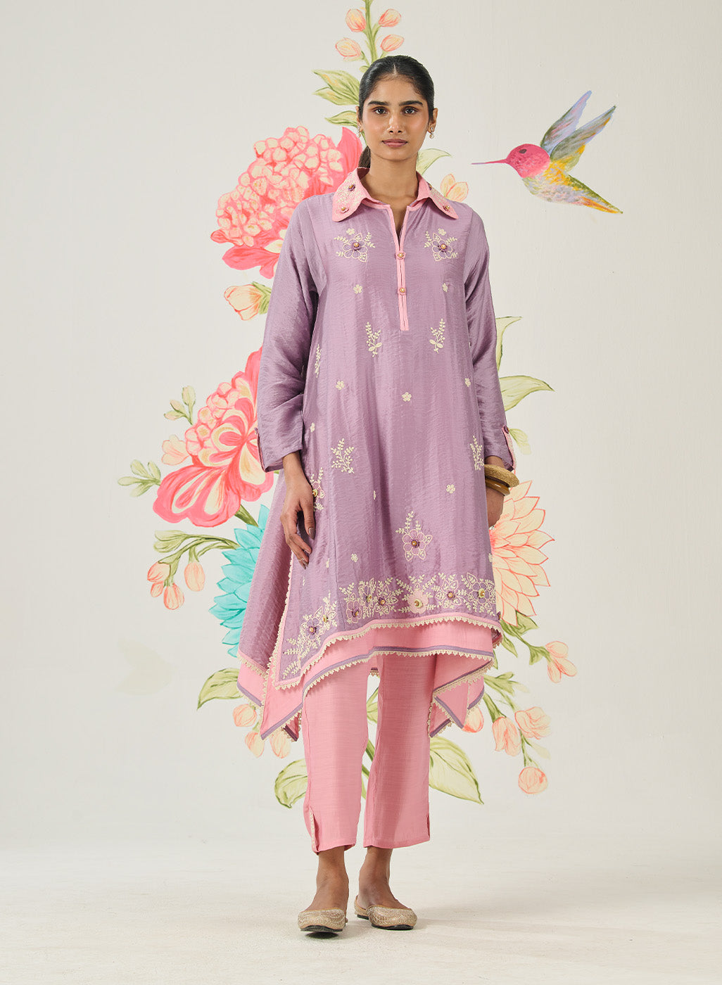 Fucshsia Embroidered Cotton Rayon Flex Kurta Set