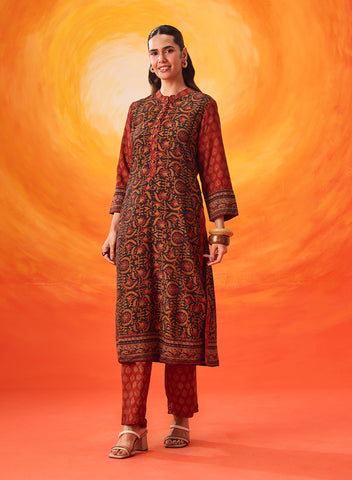 Designed in a rich purple, this kurta set feels elegant yet relaxed. The traditional motifs and contrast detailing add character, while the straight silhouette ensures easy, everyday wear.