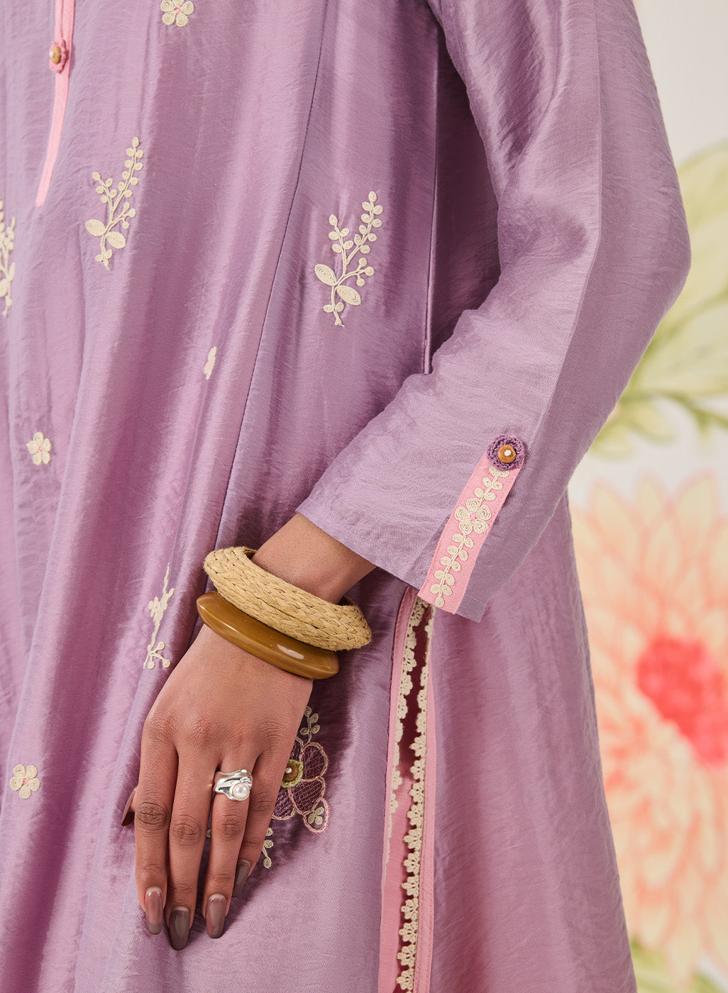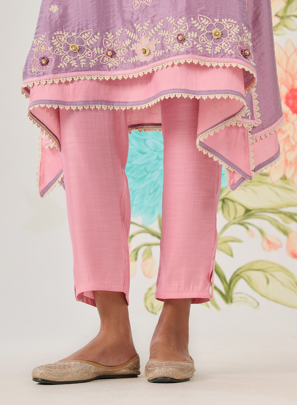 - Lace and edging details finish the kurta and pant hems beautifully.