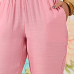 - Mid-rise pants with elastic waistband and functional pockets.