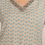 Introducing our Nadia printed V-neck kurta for women, a breathtaking addition to your everyday wardrobe. This exquisite kurta is handmade from soft, breathable rayon fabric, ensuring ultimate comfort and a touch of luxury with every wear.